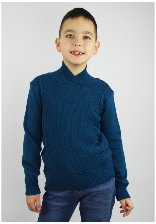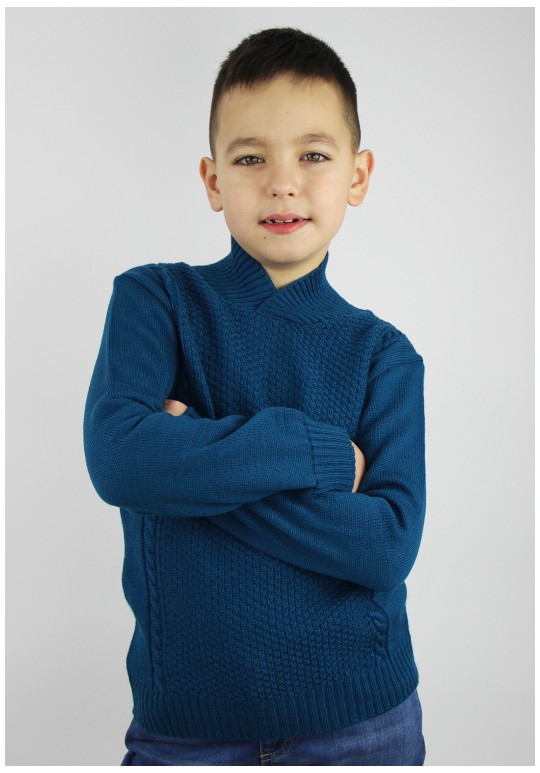 Джемпер для мальчика второго слоя одежды прямого силуэта с длинным втачным рукавом. Горловина обработана притачным воротником.