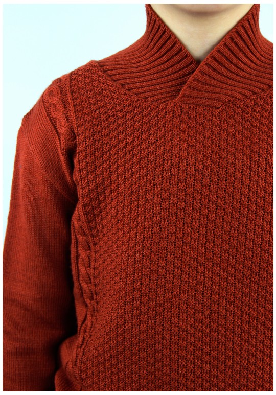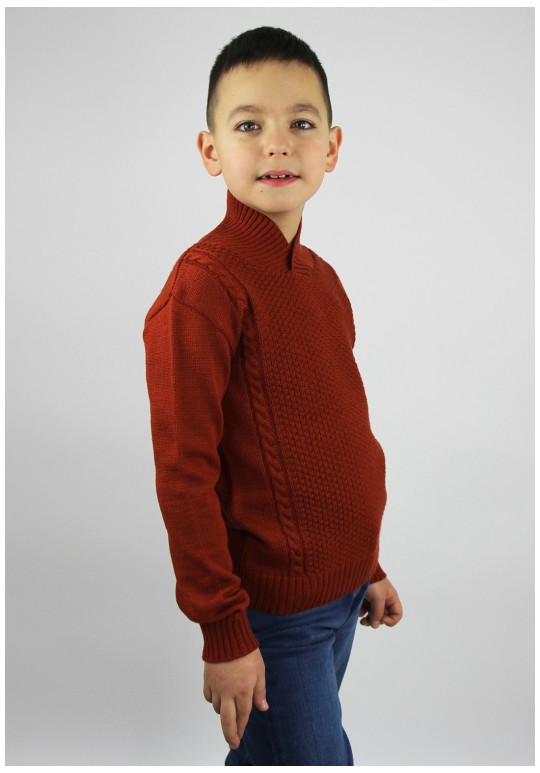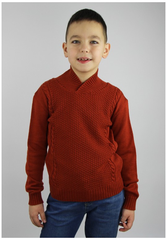 Джемпер для мальчика второго слоя одежды прямого силуэта с длинным втачным рукавом. Горловина обработана притачным воротником.