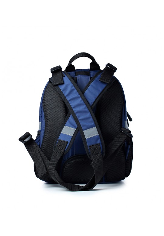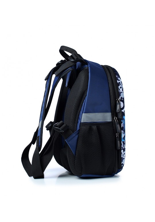 Рюкзак для начальной школы имеет жесткую спинку с анатомическими вставками из вентилируемых материалов. Уплотнённые плечевые ремни удобно регулируются под рост ребёнка. В портфеле два отделения с внутренними карманами, закрывающиеся на застёжку-молнию, которые вмещают формат А4. В наружные боковые карманы можно поместить бутылочку воды или снэки. Для повышения безопасности на детский рюкзак нанесены светоотражающие элементы. Современный школьный рюкзак с формованной передней стенкой понравится всем школьникам.