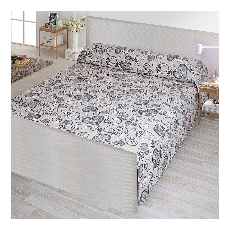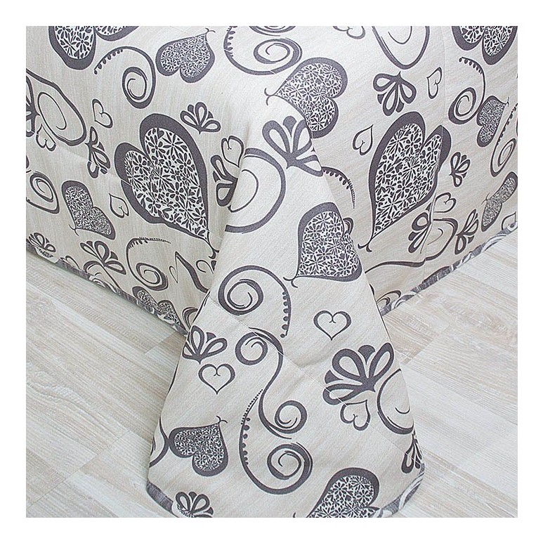 Покрывало очень нежное и приятное на ощупь, рисунок сердечками создает романтическую обстановку.