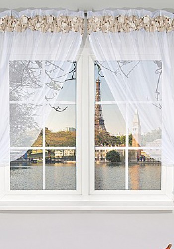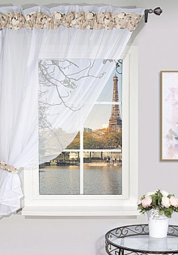 ШТОРА НА ЛЕНТЕ, КОМБИНИРОВАННАЯ: ВУАЛЬ (100% полиэстер) И РЮША ИЗ ИСПАНСКОГО ХЛОПКА (76% хлопка, 24% полиэстер).