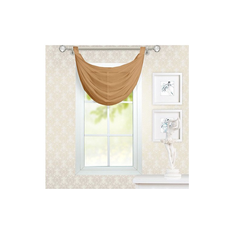 В разделе Шторы можно подобрать штору "Престиж" - вуаль на ленте или на люверсах (размеры от 200 см до 800 см), повесить ее на карниз для тюли, который обычно находится ближе к стене, а на передний карниз повесить "Итальянский сваг" в любом количестве и различных цветов.