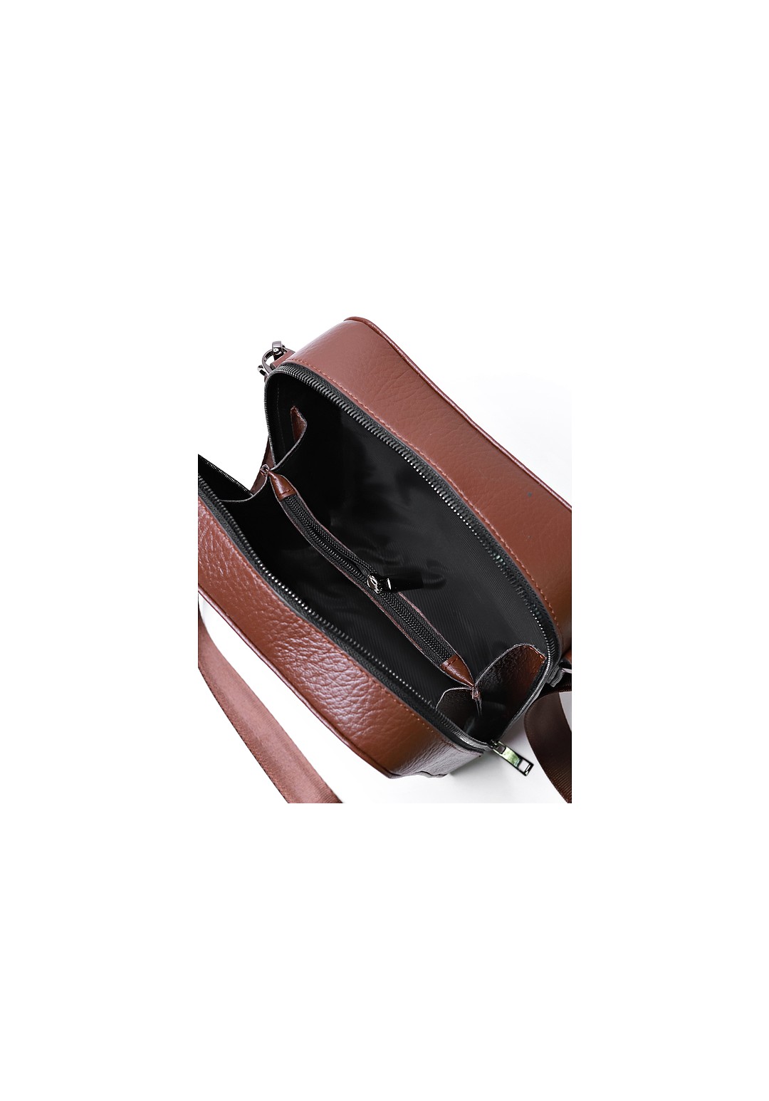 Лаконичная стильная мужская сумка через плечо. Сумка состоит из двух автономных отделений, каждое закрывается на молнию. Модель декорирована черной фурнитурой, что придает ей сдержанность и гармоничность в сочетании с темными тонами кожи.