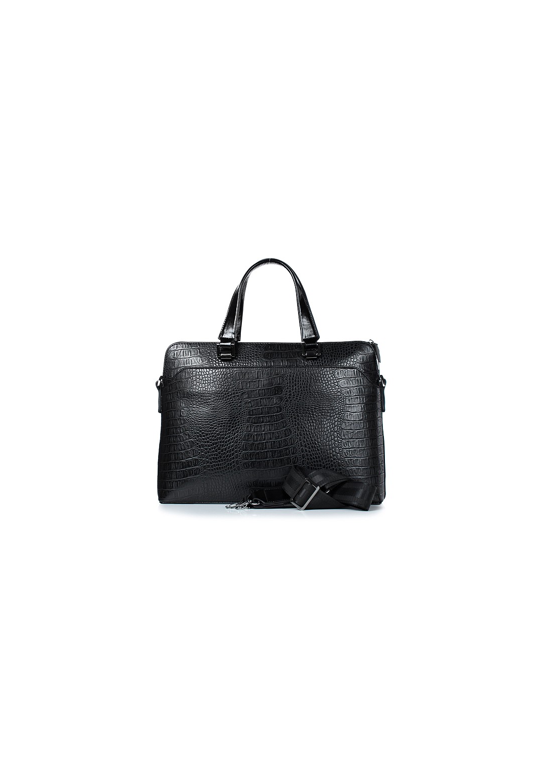 Классическая деловая сумка с двумя короткими ручками и съемной ручкой-ремнём. В сумке одно отделение, вмещающее формат А4, внутри есть карман для ноутбука, закрывающийся на липучку. На передней стенке карман на магните, на задней стенке карман на застжке-молнии. Лаконичная сумка станет отличным дополнением женского гардероба.