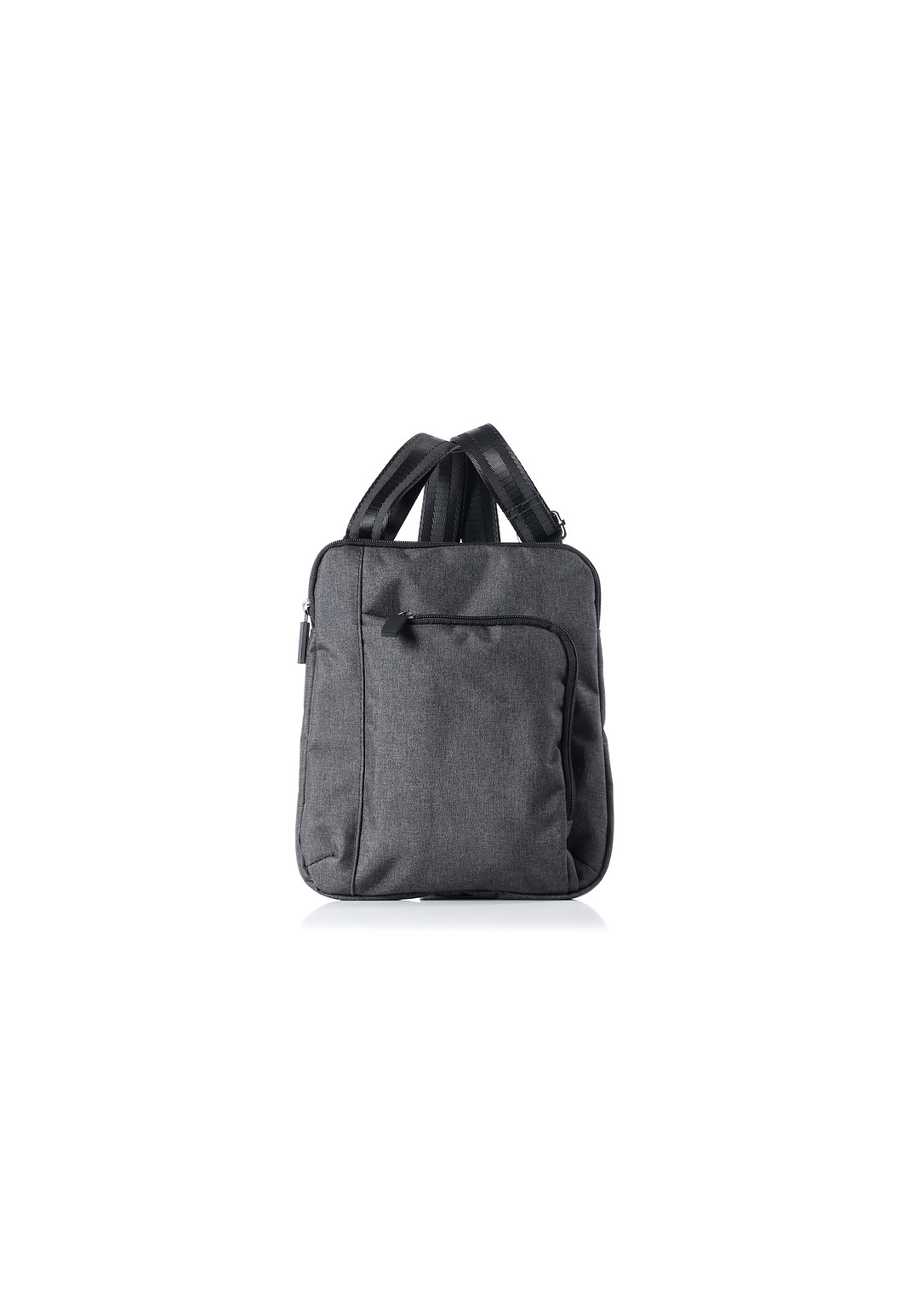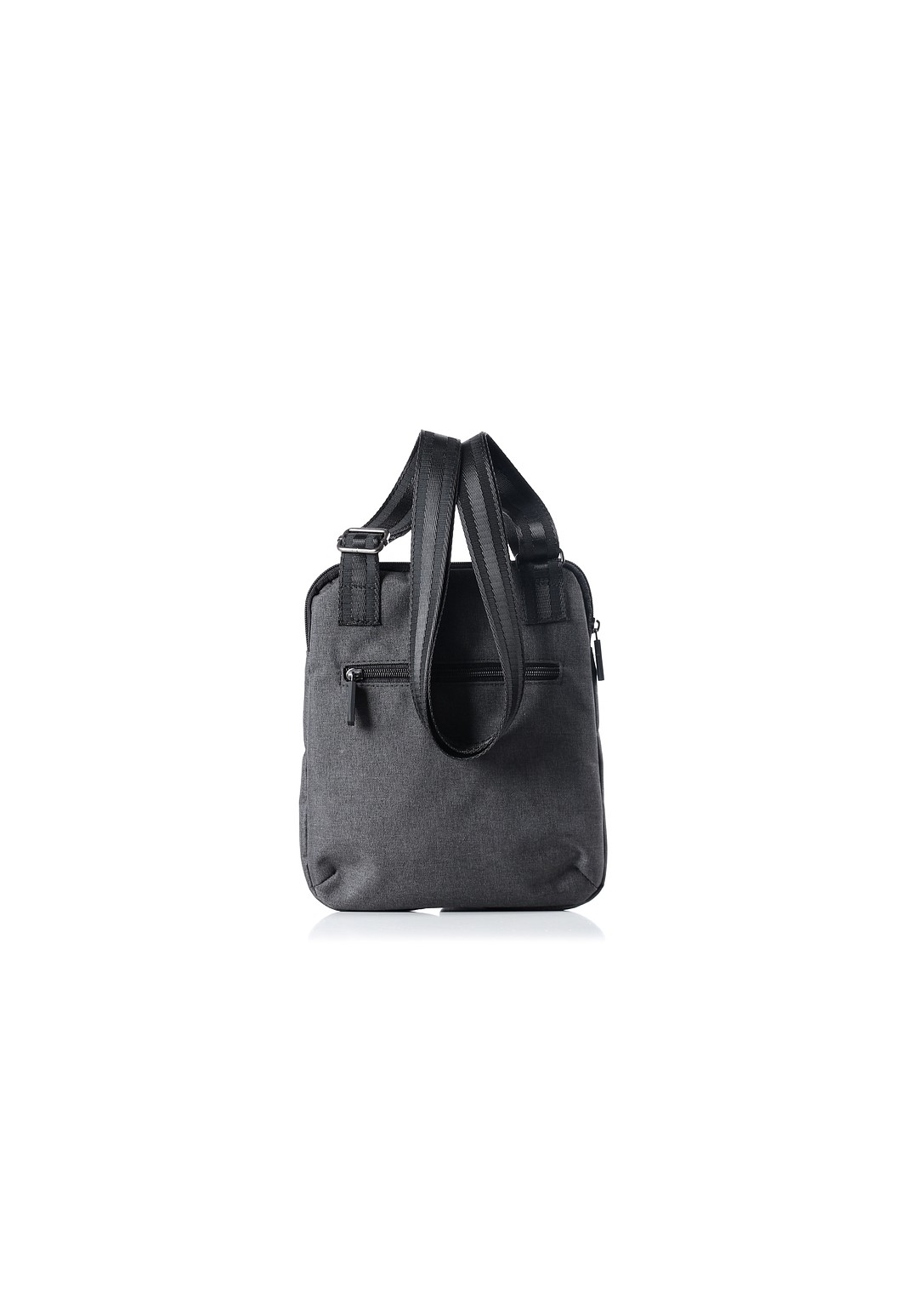 Сумка из синтетической ткани закрывается на застежку-молнию, с регулирующейся ручкой-ремнем, с карманами на передней и задней стенках, закрывающимися на застежку-молнию. Сумка на подкладке, с подвесным карманом, закрывающимся на застежку-молнию.