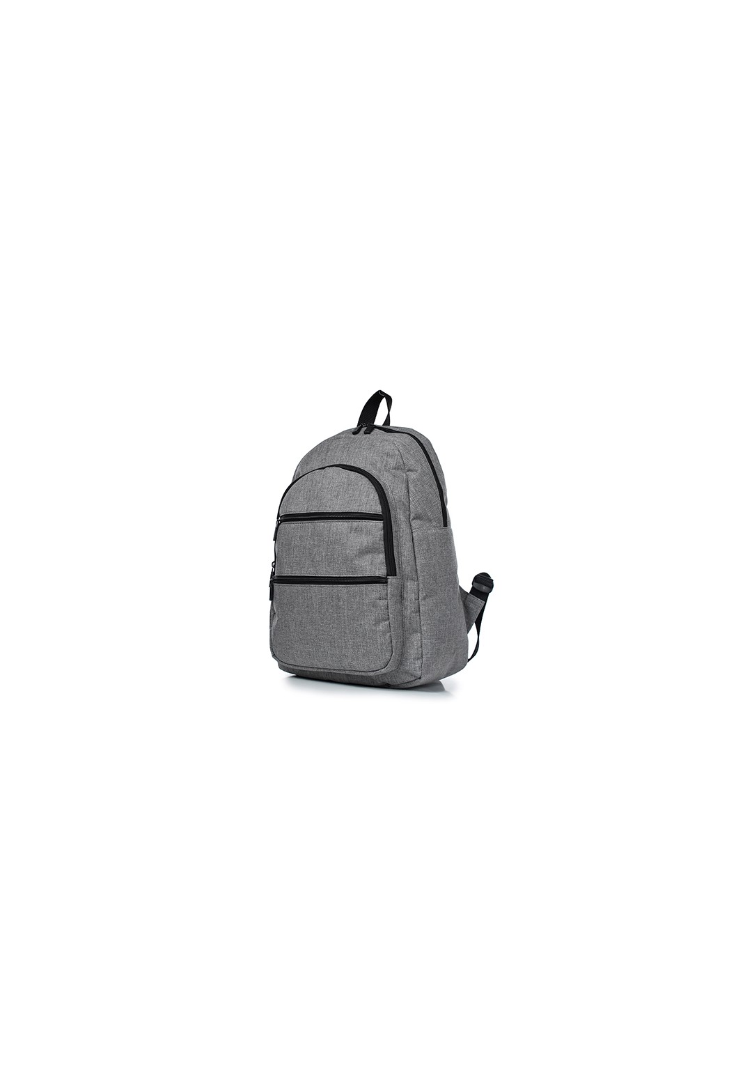 Рюкзак из синтетической ткани закрывается на застежку-молнию, с двумя плечевыми ремнями, с держателями плечевых ремней, с короткой ручкой, с объемным карманом на передней стенке, закрывающимся на застежку-молнию, с двумя карманами на переднем кармане, закрывающимся на застежку-молнию, с карманом на задней стенке, закрывающимся на застежку-молнию. Рюкзак на подкладке, с подвесным карманом, закрывающимся на застежку-молнию, с открытыми карманами, с окантовкой швов.