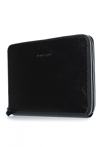 Папка из натуральной кожи на два отделения, закрывающиеся на застежку-молнию, на задней стенке карман, закрывающийся на застежку-молнию, с тиснением на передней стенке, с поводками на движках. Папка на подкладке, с подвесным карманом, закрывающимся на застежку-молнию, с карандашником, с открытым карманом, с карманом-перегородкой, закрывающимся на застежку-молнию.
