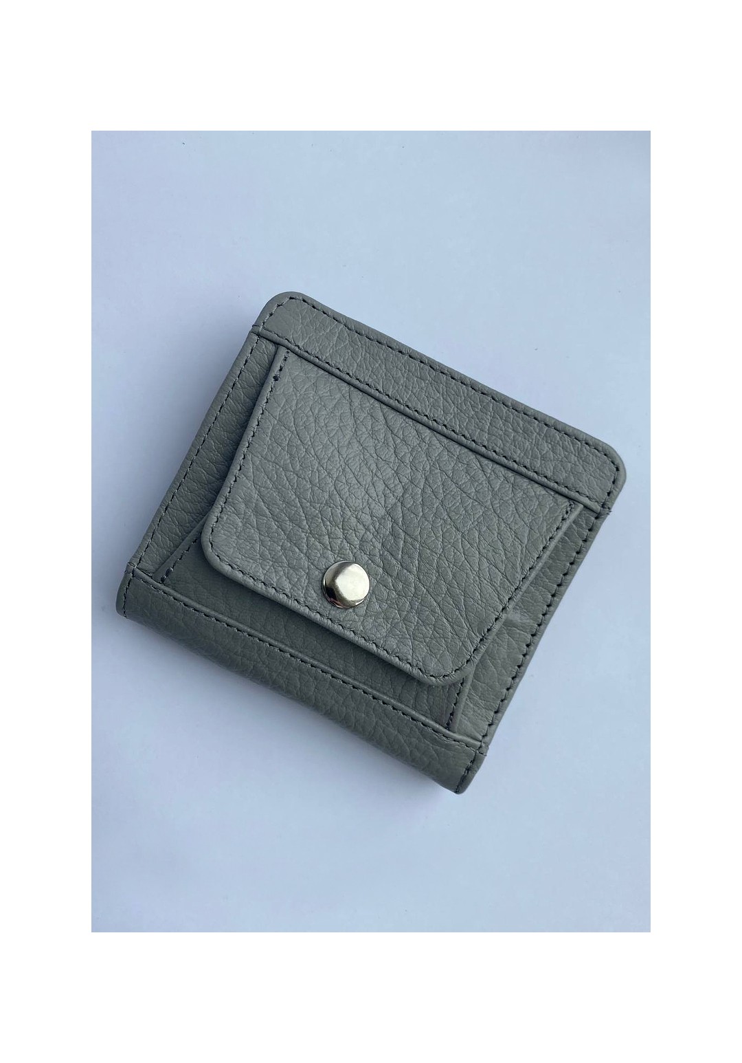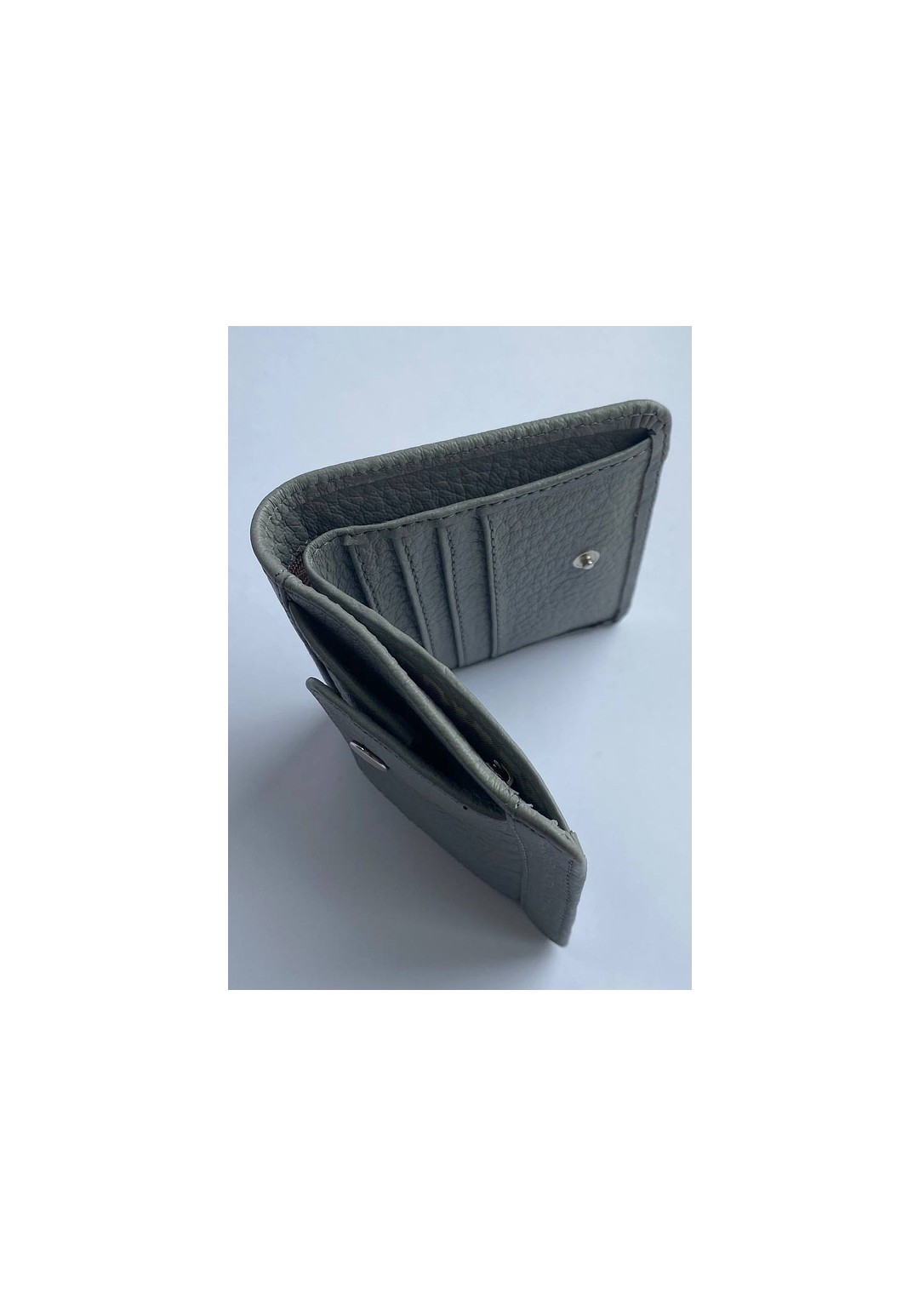 Портмоне закрывается на кнопку, имеет отделение для бумажных купюр и карманы для пластиковых карт. На передней части корпуса находится отделение для монет, закрывающееся клапаном на кнопку. Портмоне на подкладке, с карманом.