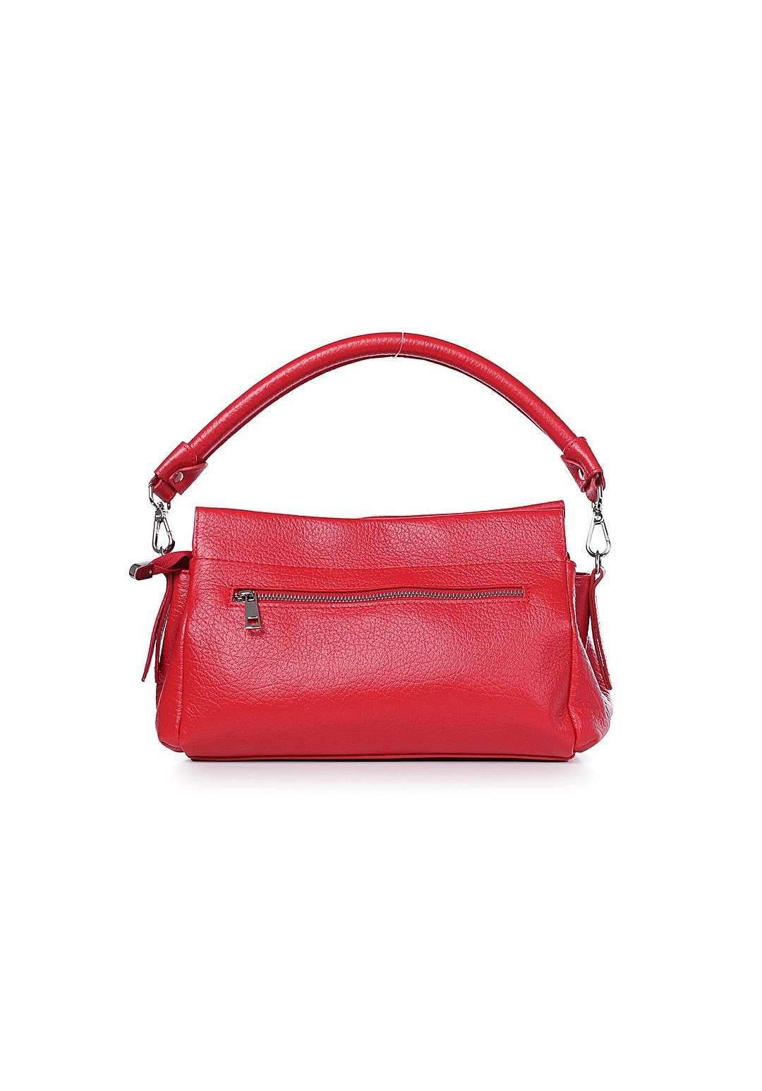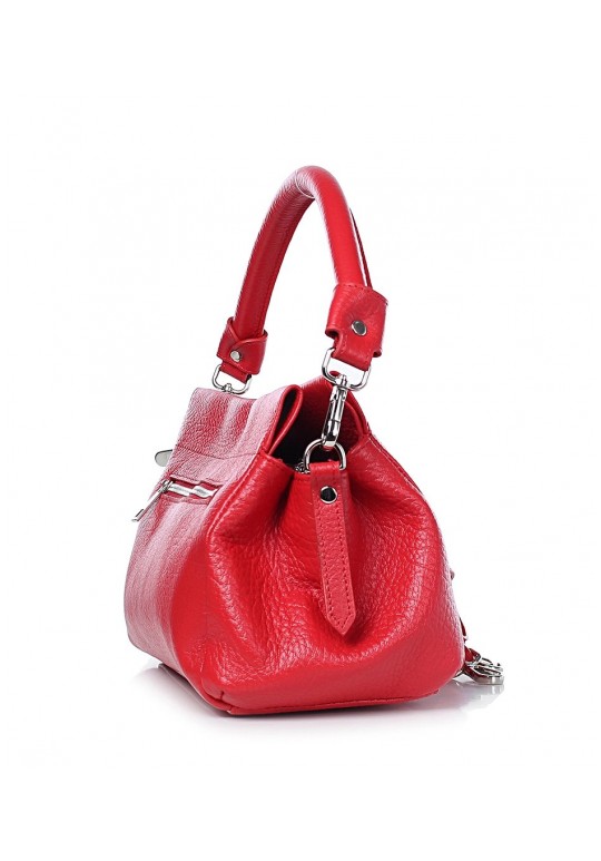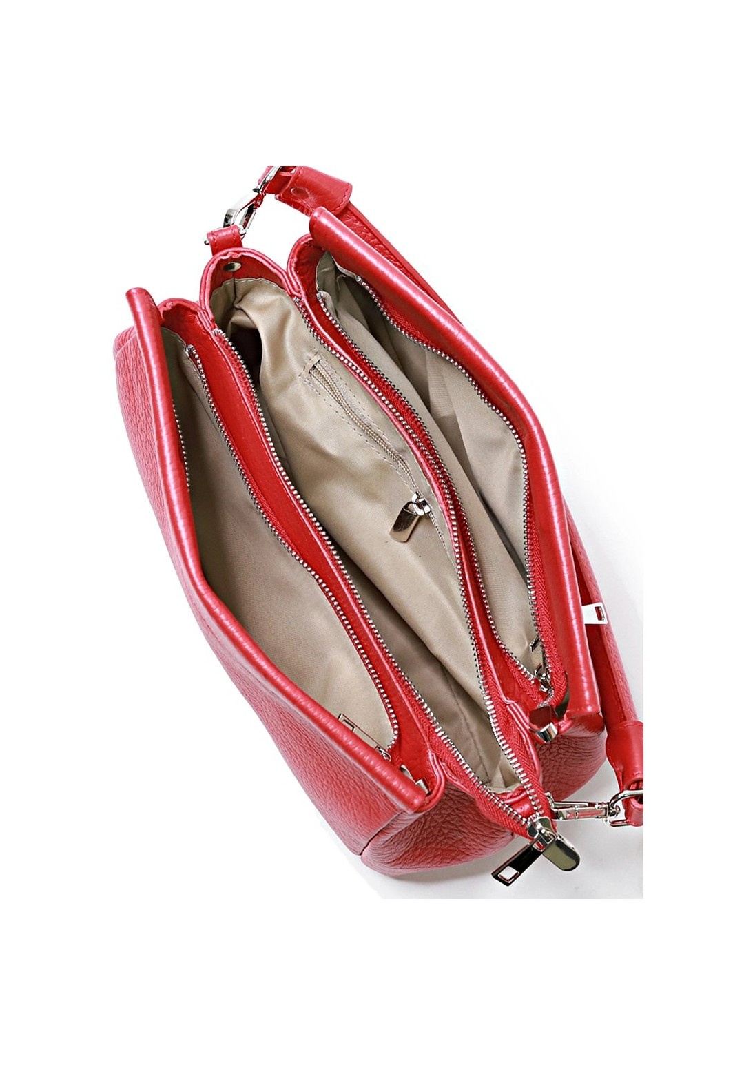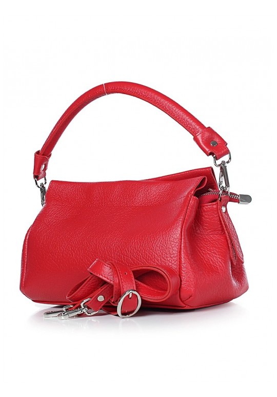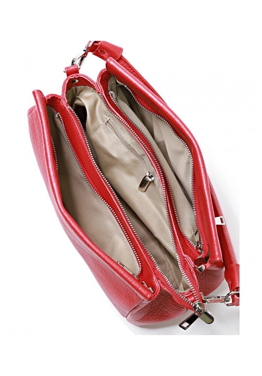 Сумка на три отделения, закрывающиеся на застежку-молнию и на замок-магнитку, с одной короткой ручкой, с регулирующейся ручкой-ремнем, с боковыми держателями. На задней стенке карман.