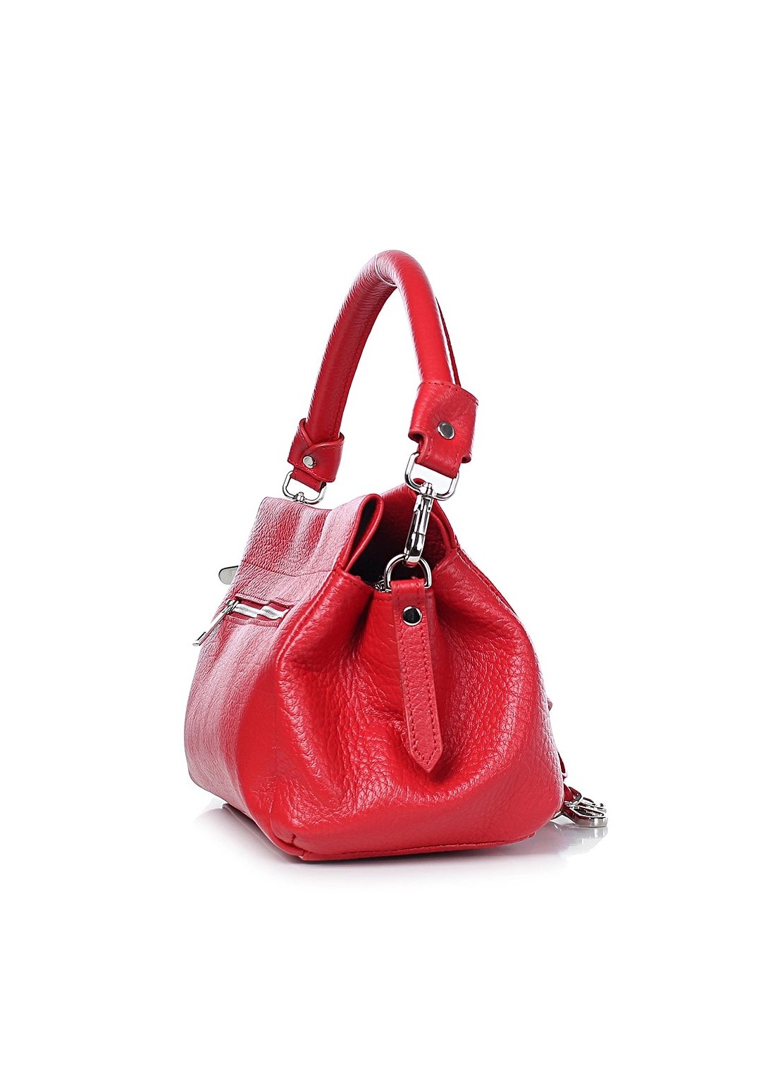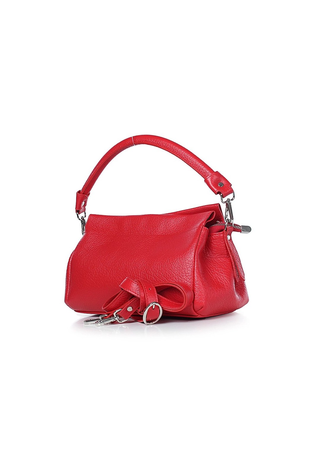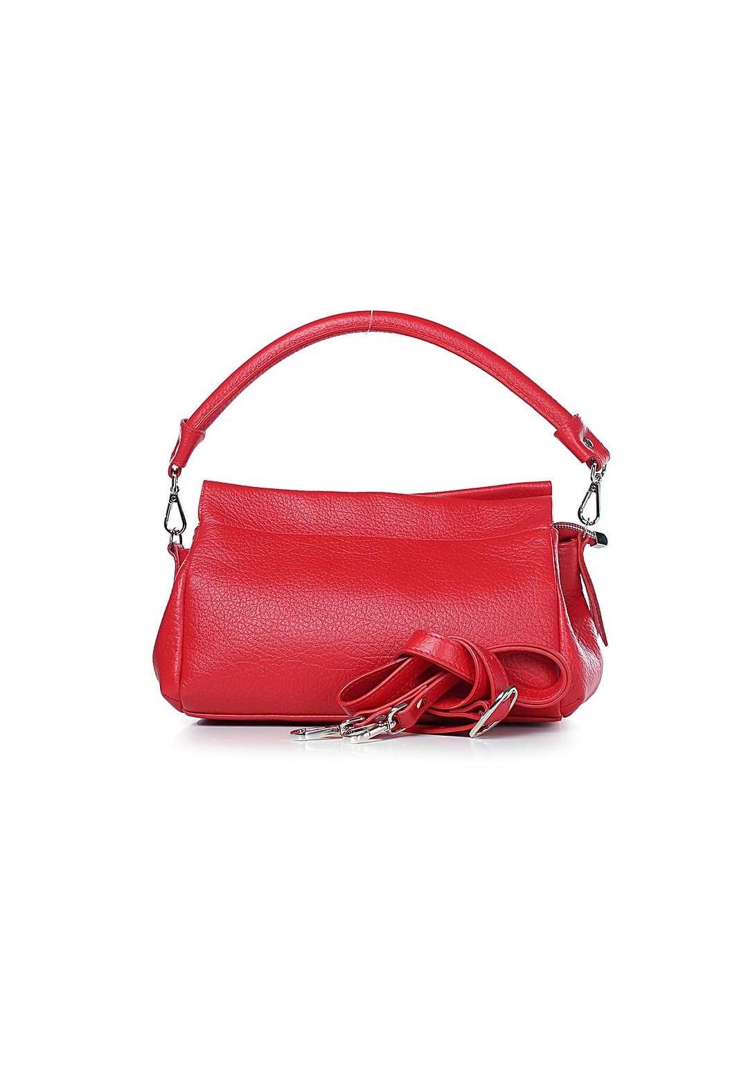 Сумка на три отделения, закрывающиеся на застежку-молнию и на замок-магнитку, с одной короткой ручкой, с регулирующейся ручкой-ремнем, с боковыми держателями. На задней стенке карман.
