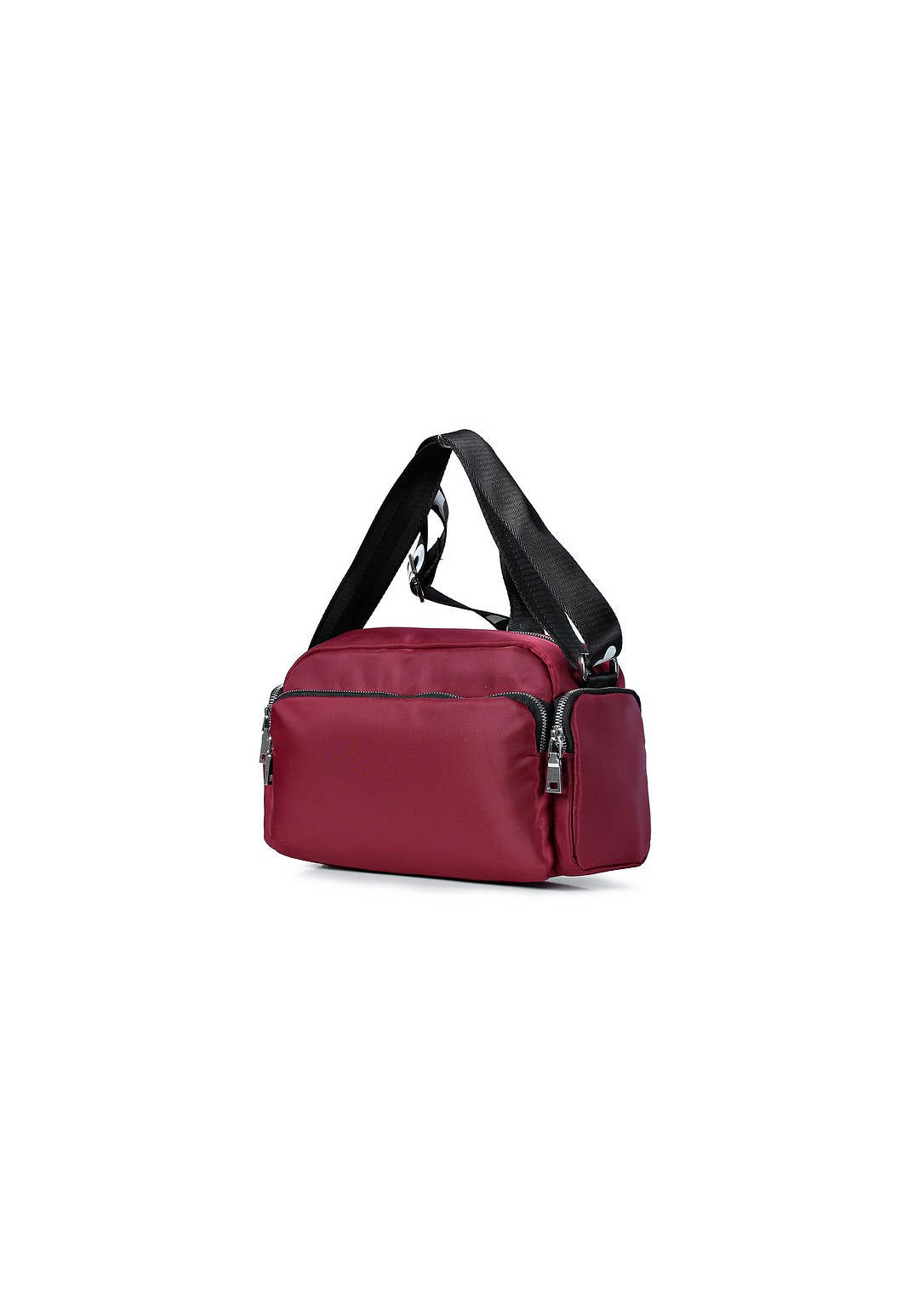 Современная молодежная сумка из синтетического материала, который является сейчас очень популярным. Широкий ремень из тесьмы с рисунком, металические молнии на карманах с элементами декора и оригинального образа модели
