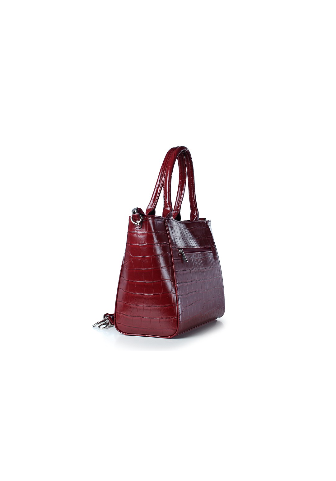 Сумка из искусственной кожи на одно отделение,закрывающееся на застежку-молнию,с двумя ручками со шнуром длиной 470+-10мм,с ручкой-ремнем на карабинах длиной 950+-10мм,с боковыми р/держателями на заклепках,на задней стенке карман,закрывающийся на застежку-молнию,фурнитура-никель. Сумка на подкладке,с открытым карманом,с карманом-перегородка,закрывающимся на застежку-молнию.