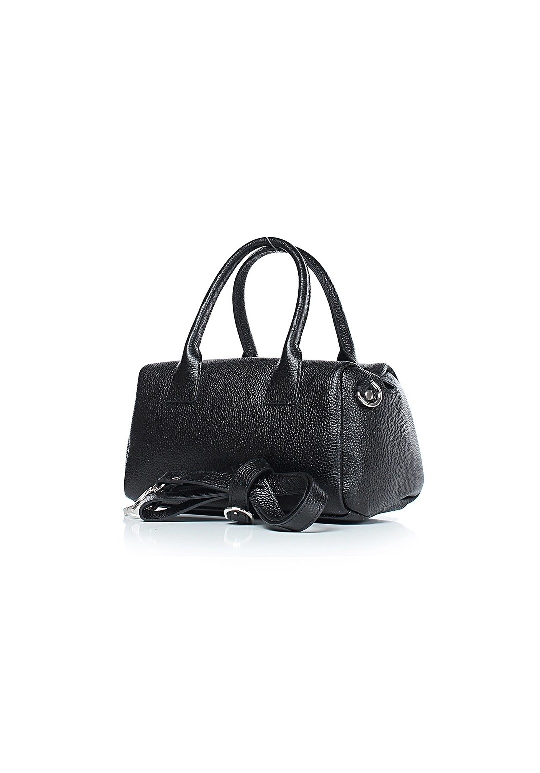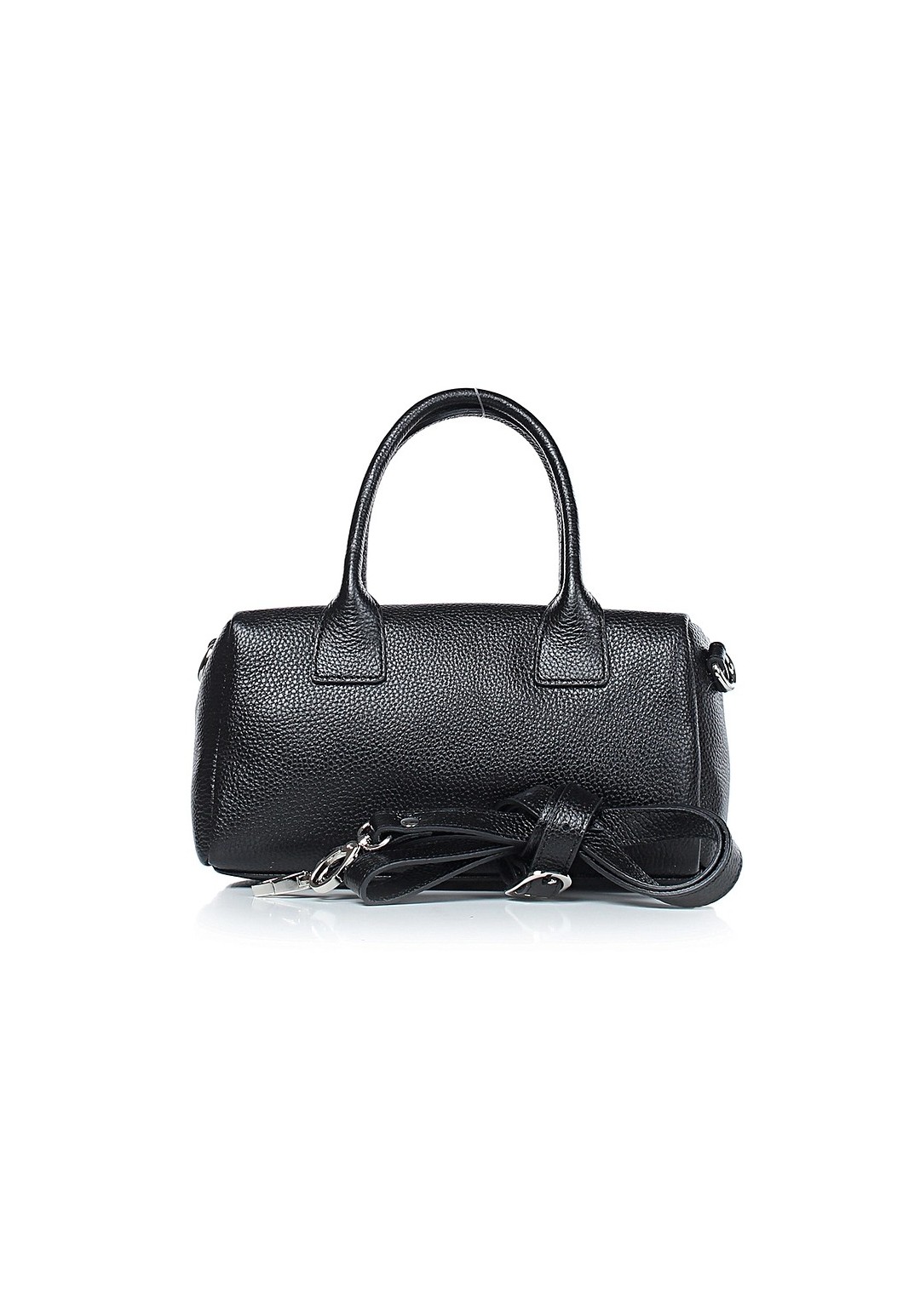Женская небольшая сумка из натуральной кожи мягкой конструкции — стильное и удобное решение для повседневных образов. Одно отделение, закрывающееся на застежку-молнию, надежно защитит ваши вещи. Две ручки позволяют носить сумку в руке а съемный, регулируемый ремень с пряжкой — выбрать наиболее комфортную длину. На задней стенке расположен карман, закрывающийся на застежку-молнию, для быстрого доступа к мелочам. Внутри — подкладка, открытый карман с украшением, подвесной карман на застежке-молнии и окантовка внутренних швов, придающие изделию аккуратный и завершенный вид. Цвет фурнитуры — никель. Эта сумка станет компактным, стильным акцентом в любом образе.