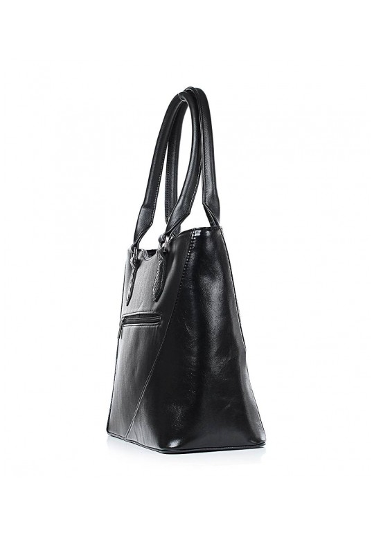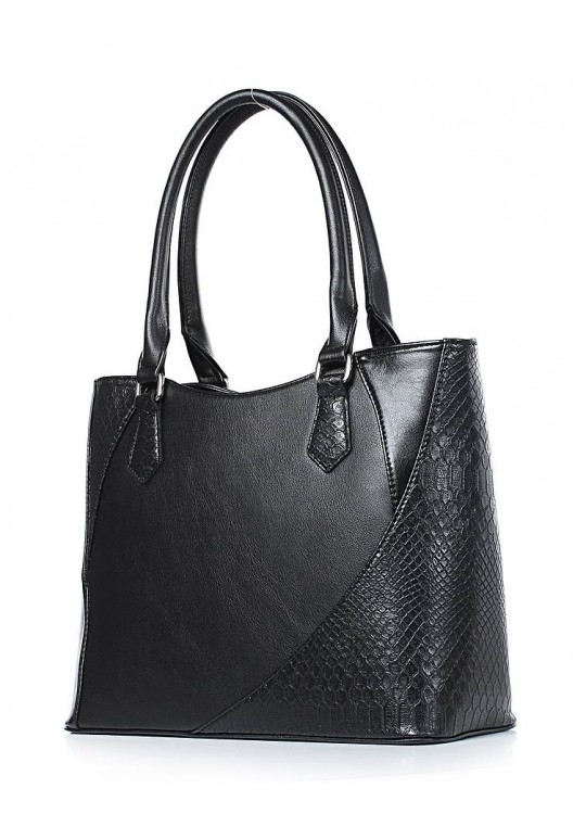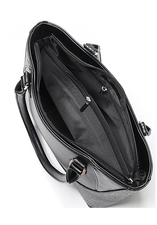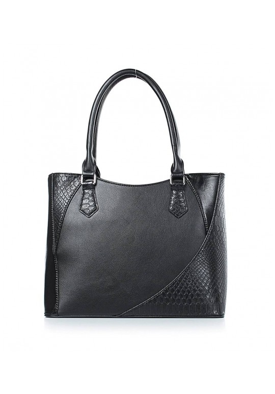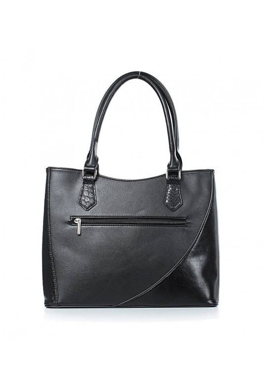 Сумка из искусственной кожи, закрывается на застежку-молнию, с двумя ручками. На задней стенке карман, закрывающийся на застежку-молнию. Стенки состоят из частей. Сумка на подкладке, с открытым карманом, с подвесным карманом, закрывающимся на застежку-молнию, с карманом-перегородкой, закрывающимся на застежку-молнию.