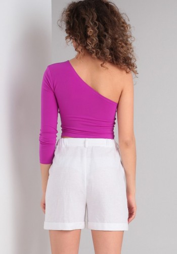 Рюкзак с трем отделения на молнии, с одной короткой ручкой и двумя плечевыми ремнями на молнии, образующими один плечевой ремень, на задней стенке карман на молнии.