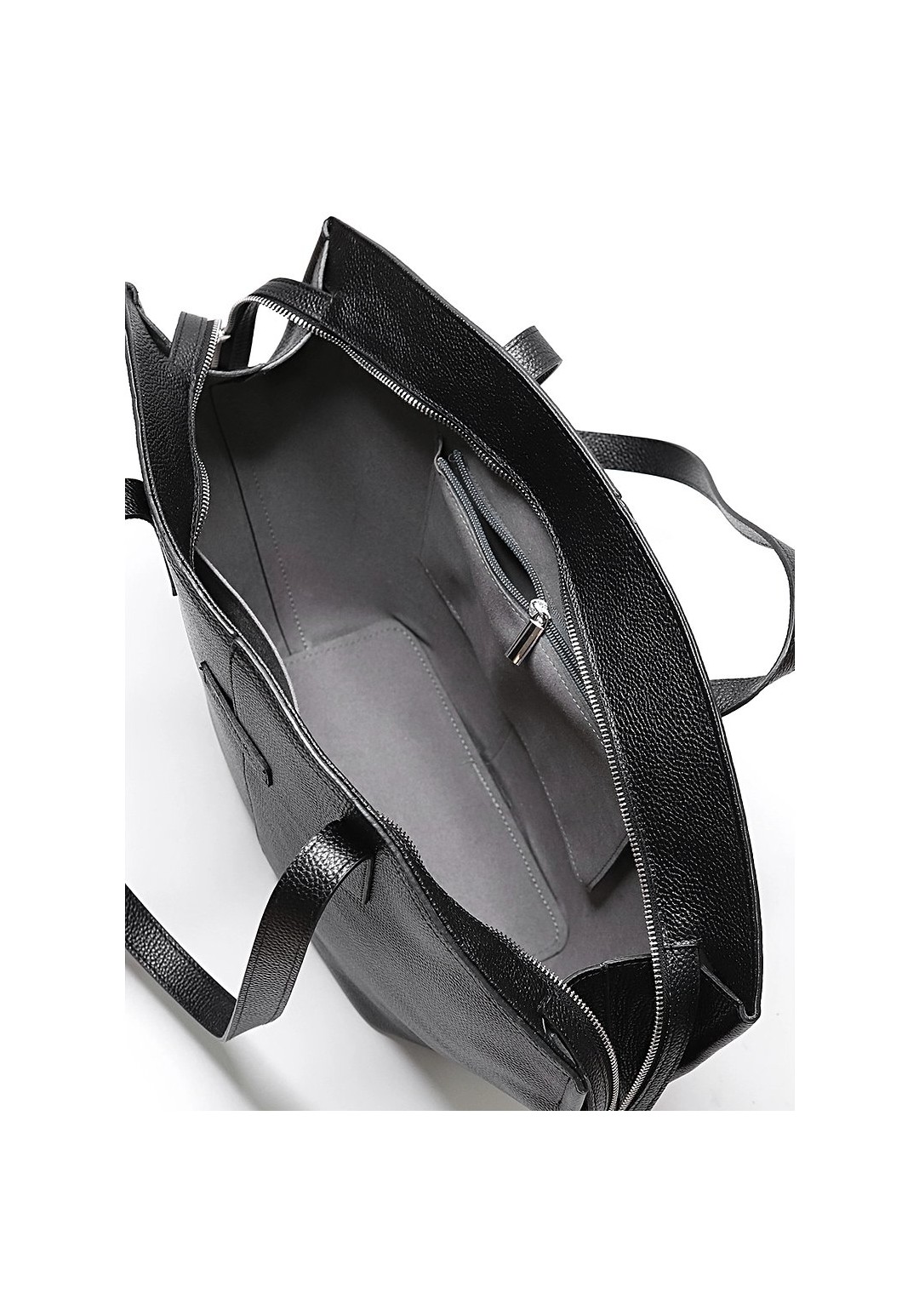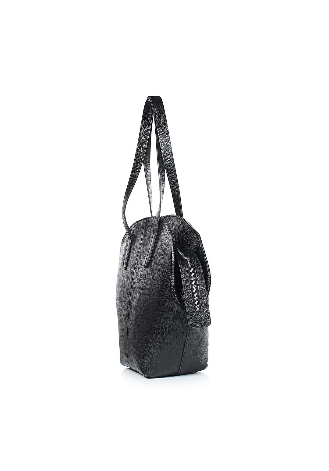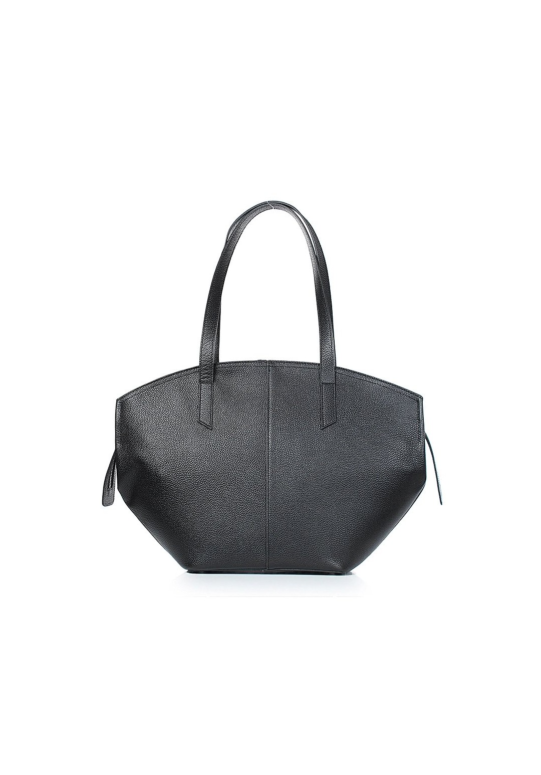 Большая вместительная сумка из натуральной кожи актуальной трапецивидной кверху формы с удобными удлиненными ручками для носки на плече. Закрывается на молнию, внутри одно просторное отделение с функциональными карманами. На корпусе изделия присутствуют логотипы.