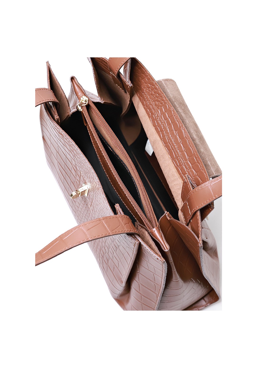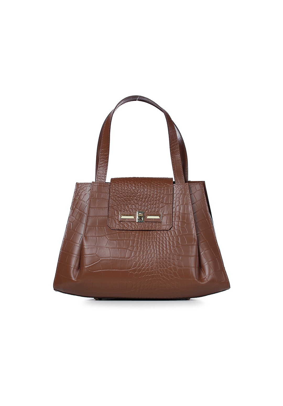 Элегантная сумка из натуральной кожи оригинальной современной формы (2 открытых и одно закрытое отделение). Сумка прекрасно впишется как в классический гардероб деловой женщины, так и удачно дополнит образ стильной горожанки остромодным аксессуаром.