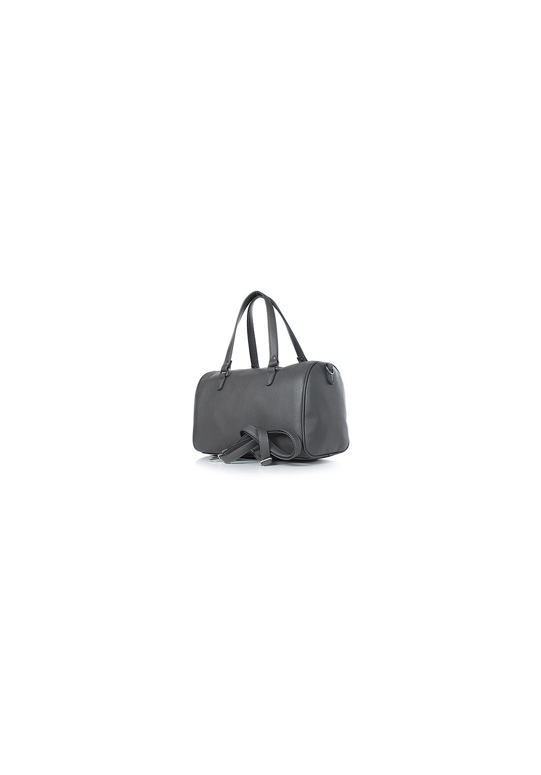 Сумка-бочонок из искусственной кожи среднего размера на двух коротких ручках и с регулируемым плечевым ремнем. Имеет вместительное основное отделение, наружный и внутренний карманы для мелочей. Сумка выполнена в однотонном материале с отделкой в виде металической молнии