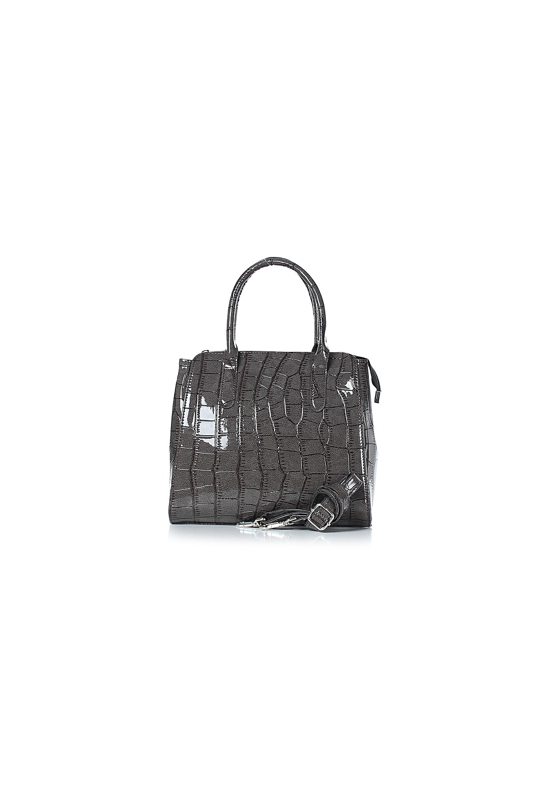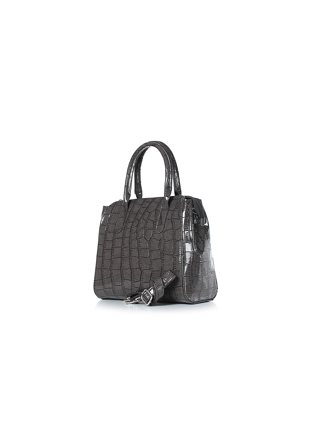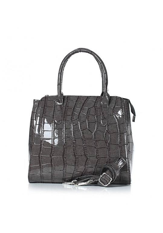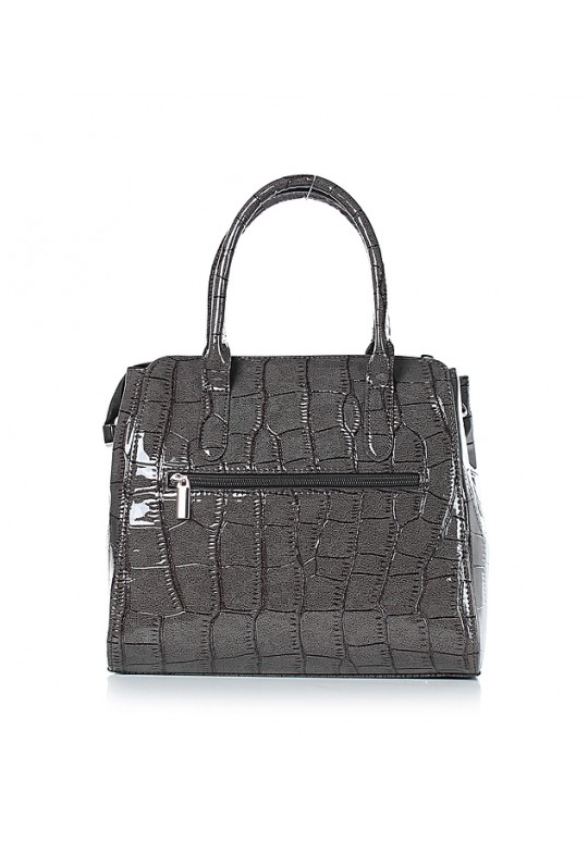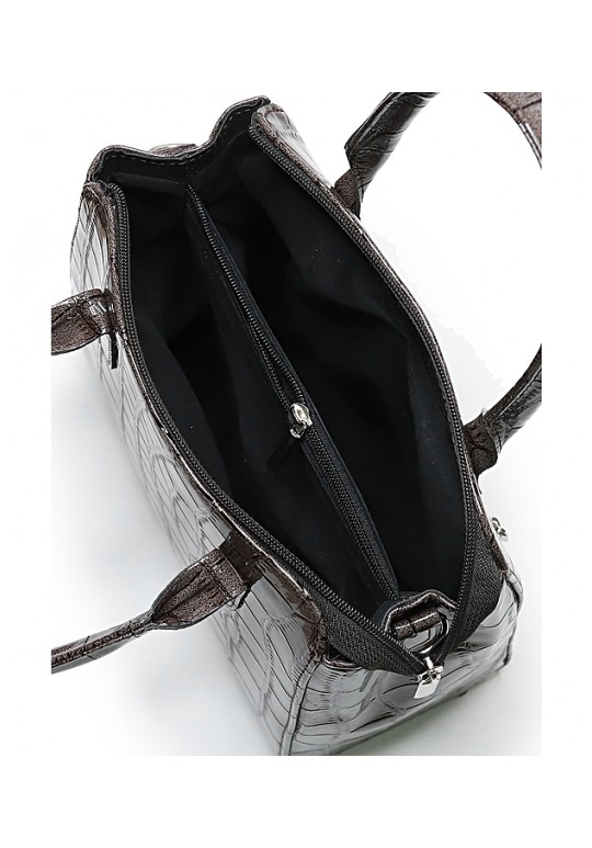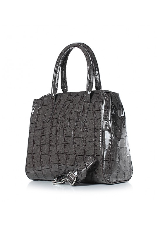 Сумка из искусственной кожи на одно отделение, закрывается на застежку-молнию. Внутреннее пространство разделено перегороднкой на молнии, есть карман на задней стенке. В комплект входит регулирующийся плечевой ремень, а для удобства ношения предусмотрены две короткие ручки.