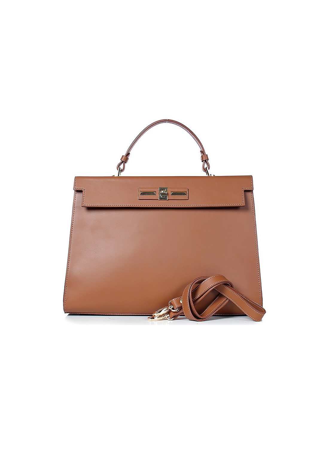 Женственная модель сумки подходит для документов и выглядит элегантно. Выполнена из натуральной кожи трапецивидной формы с четкими прямыми линиями клапана, дополненного золотой фурнитурой. Внутри вместительное отделение с карманом на задней стенке и карманом на переддней для мелочей. Посередине расположена перегородка.
