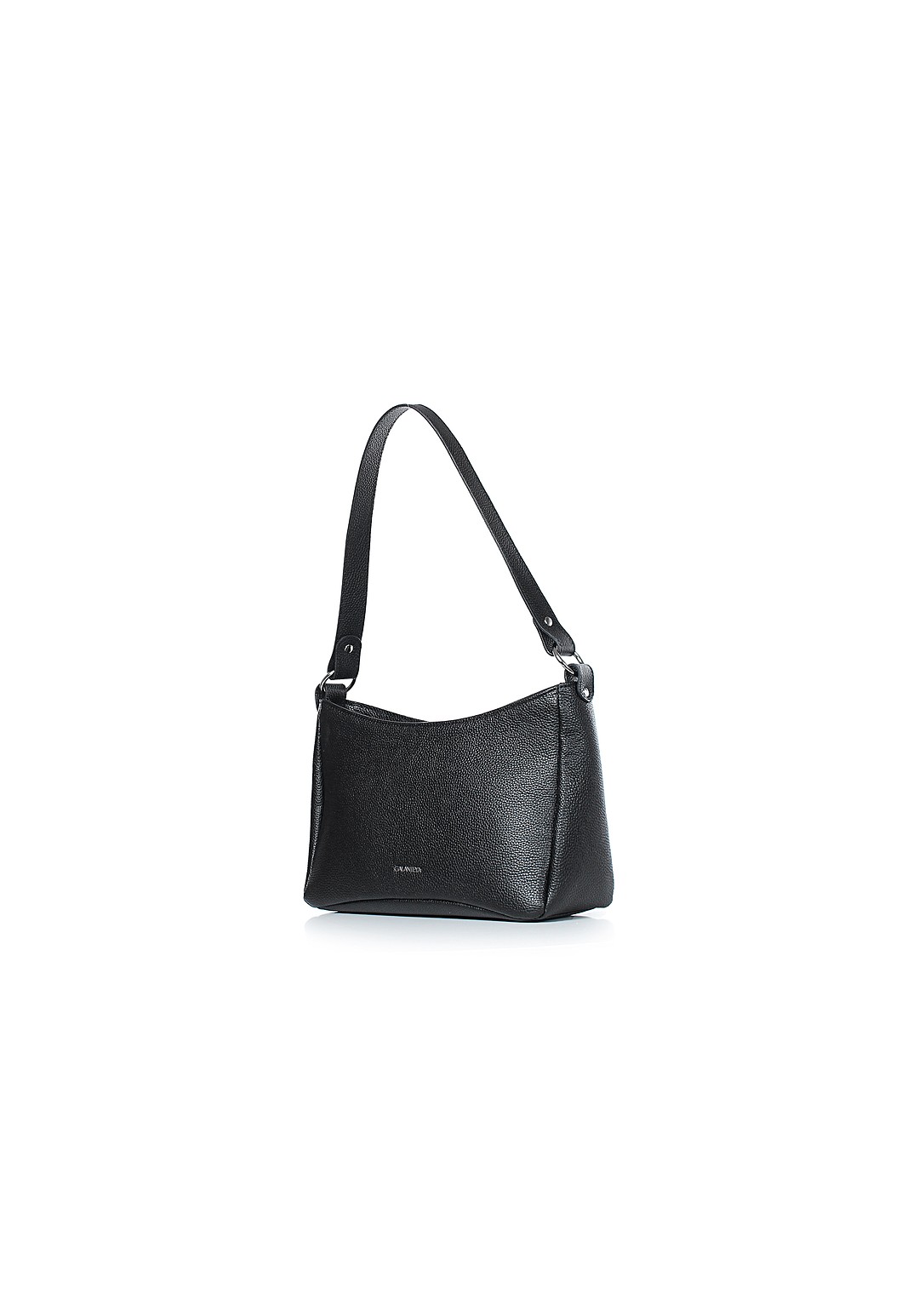 Стильная женская сумка среднего размера интересной конструкции. Имеет слегка "приталенный" силуэт, что придает изделию элегантность. На задней стенке расположен дополнительный карман. Внутри имеется карман. Удобно носить на одну руку на плечо.