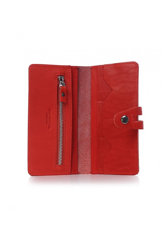 Портмоне из натуральной кожи, закрывается цупфером на кнопку, с краями в обрезку, без обработки краёв, с тиснением на корпусе и поводком на движке. Портмоне частично на подкладке, с карманами для пластиковых карт, с одним карманом, закрывающимся на молнию и карманами для купюр.
