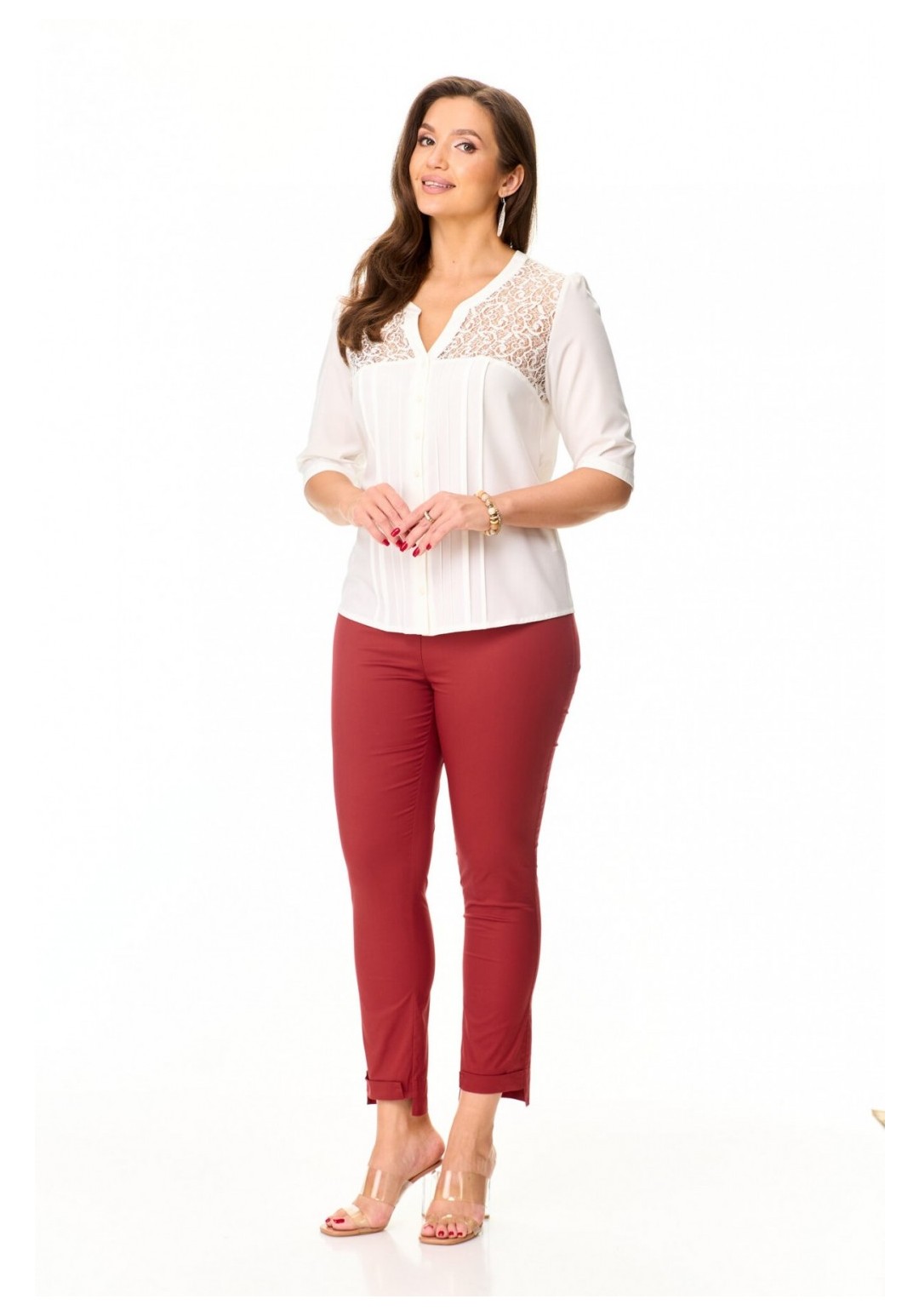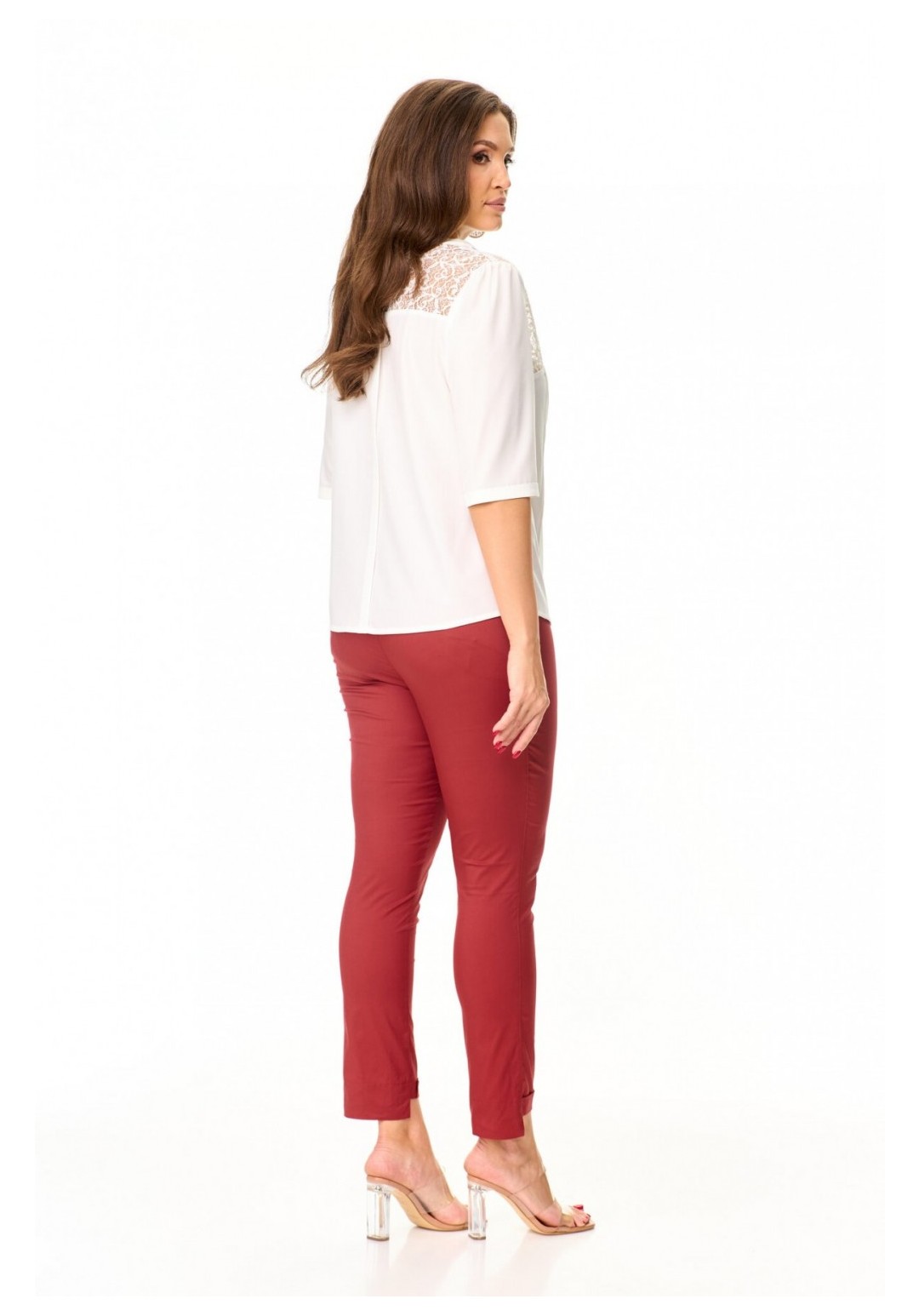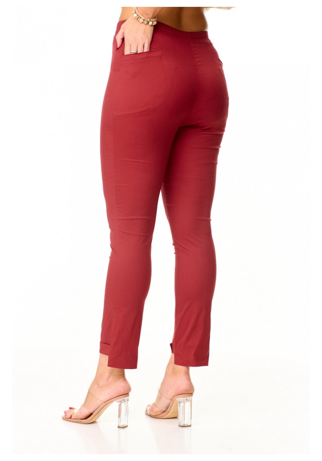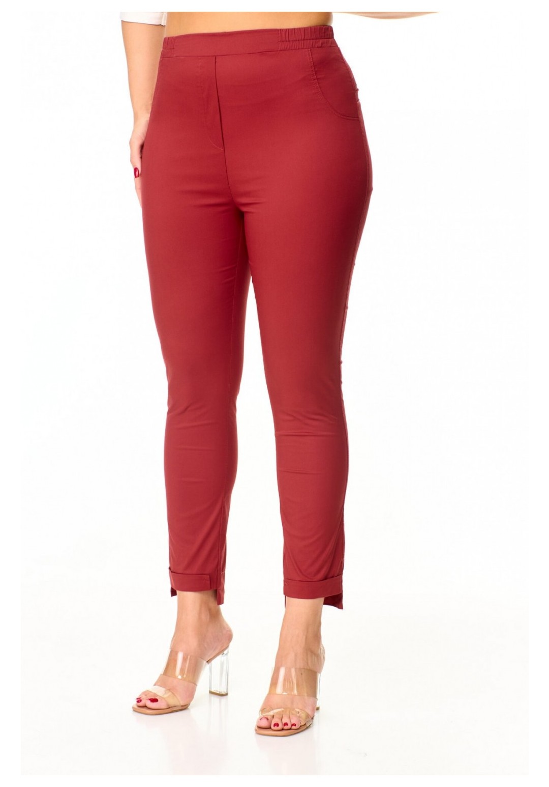 Брюки женские Скинни с ассиметричным низом и подворотом по передней половинке. Притачной пояс на эластичной резинке от середины передних половинок и по спинке, без застежки. На передних половинках имитация карманов. По задним половинкам функциональные карманчики с оригинальной отделкой. В брюках средняя посадка. Ткань эластичная дышащая, плотно облегает тело, но не сковывает движений, если выбрать верный размер. При выборе размера обратите внимание на наши замеры готовых изделий. Брюки могут быть как повседневными, так и нарядными. В образе на видео наши брюки Скинни синего цвета с блузой розового цвета с артикулом 4039. Брюки представлены в четырех цветах с размерами от 42 до 56: синие – с артикулом 2018, красный с артикулом 2020; черные - с артикулом 2017; оранжевые - с артикулом 2019. Блуза у нас так же представлена в белом цвете с артикулом 4040 и в розовом с артикулом 4039. Эти брюки скинни не выходят из моды много лет. Оригинальный и неповторимый дизайн изделия – низ, задние карманчики. Средняя длина по боковому шву: 98 см. Точные замеры в каждом размере мы всегда прилагаем к описаниям. Фотомодель на фотографиях ростом 172 сантиметра, с обхватом груди – 90, талии – 74, бедер – 104. Размер – 48. Ссылка на видеоролики с нашими моделями на нашем канале: https://www.youtube.com/watch?v=vVJgrIFLypk https://www.youtube.com/channel/UCoc-ebSx-vlljERzncjvmVw Фактические замеры изделий (в готовом виде), в которых: ОТ – обхват талии (резинка собрана/растянута); ОБ – обхват бедер; ДИ – длина изделий (по внутреннему/по наружному шву). Рост фотомодели – 172 см, размер фотомодели – 48. Размер 42 ОТ – 58-68; ОБ – 92; ДИ – 68/98 Размер 44 ОТ – 62-72; ОБ – 96; ДИ – 68/98 Размер 46 ОТ – 66-76; ОБ – 100; ДИ – 68/98 Размер 48 ОТ – 70-80; ОБ – 104; ДИ – 68/98 Размер 50 ОТ – 74-84; ОБ – 108; ДИ – 68/98 Размер 52 ОТ – 78-88; ОБ – 112; ДИ – 69/99 Размер 54 ОТ – 82-92; ОБ – 116; ДИ – 69/99 Размер 56 ОТ – 86-96; ОБ – 120; ДИ – 69/99