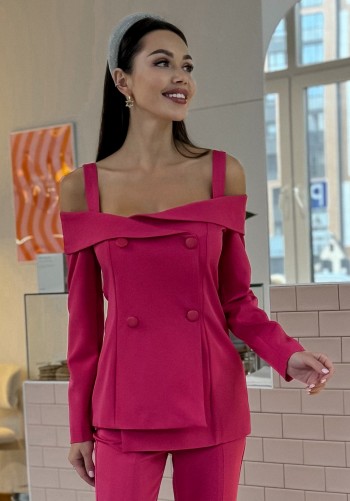 Брюки прямого силуэта. Застёжка-гульфик с молнией. Обработаны карманы в боковых швах. Передние половинки по центру брюк обработаны отделочным швом с разрезом по низу.