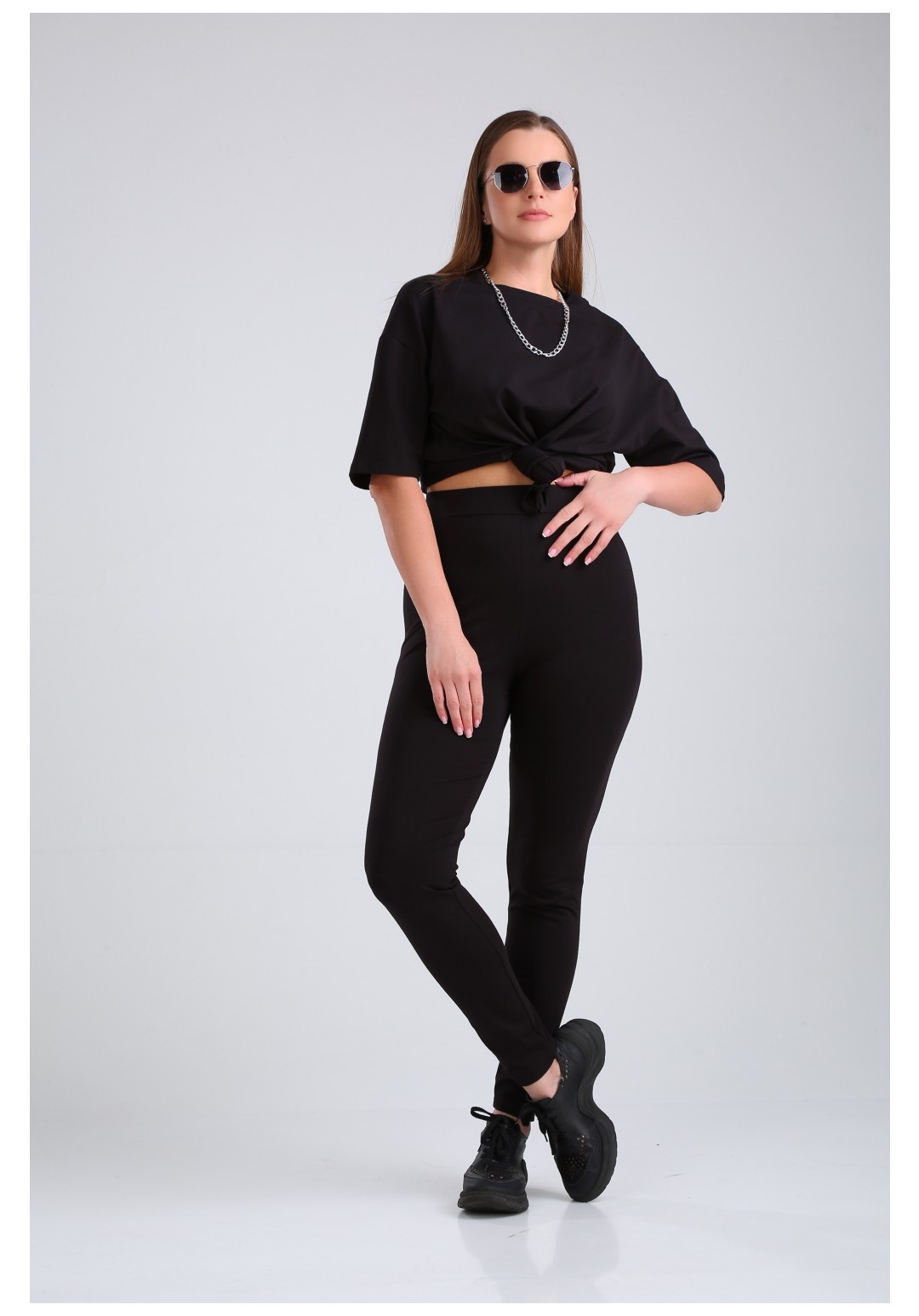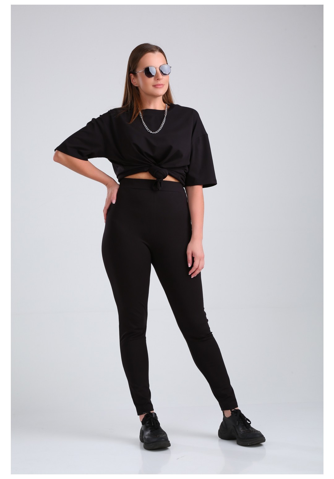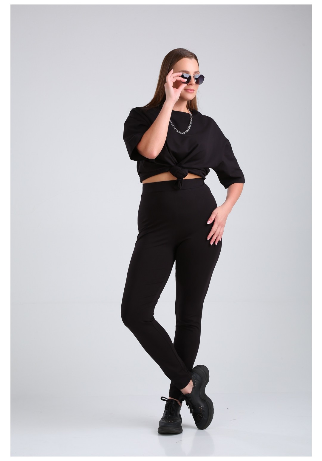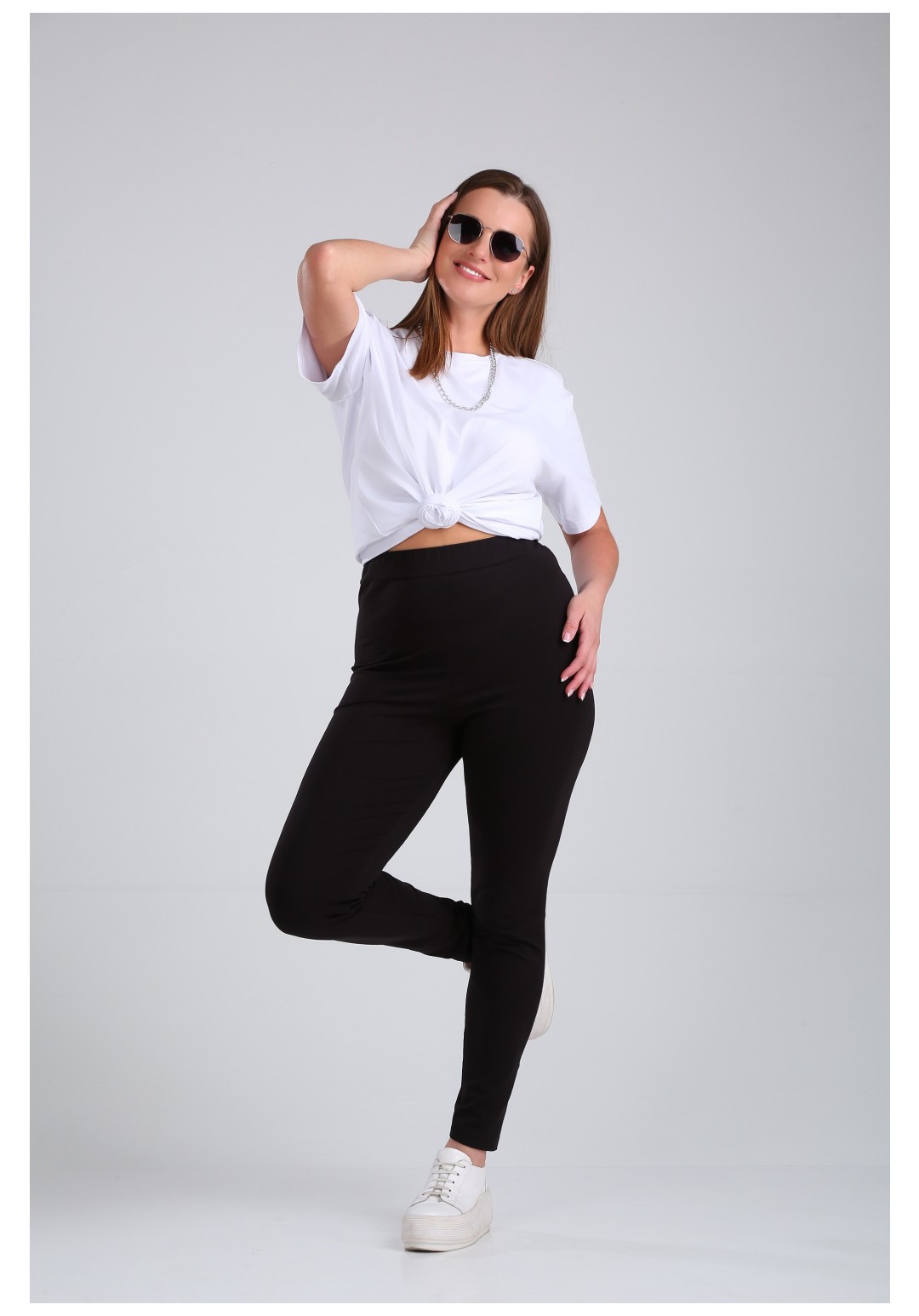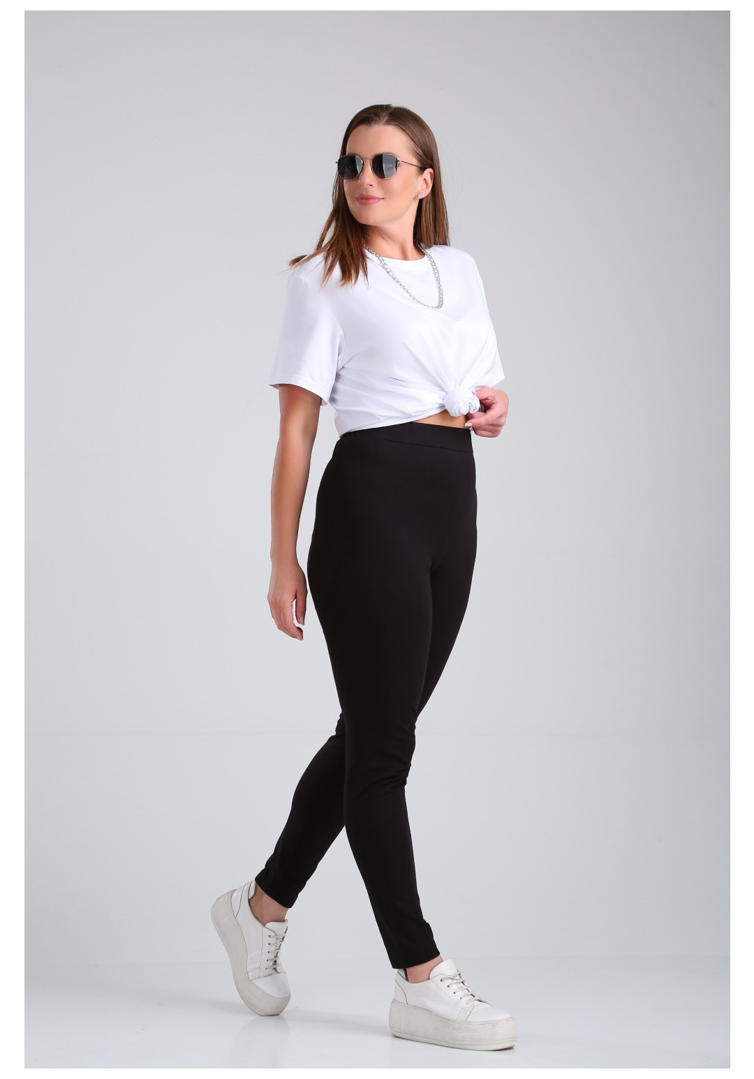 Женские облегающие легинсы, классической посадки по талии, приточной пояс с эластичной тесьмой резинкой, без застёжки. Длина по боковому шву 103 см. Длина по шаговому шву 75 см. Высота посадки по спинке 42 см, по переду 34 см.