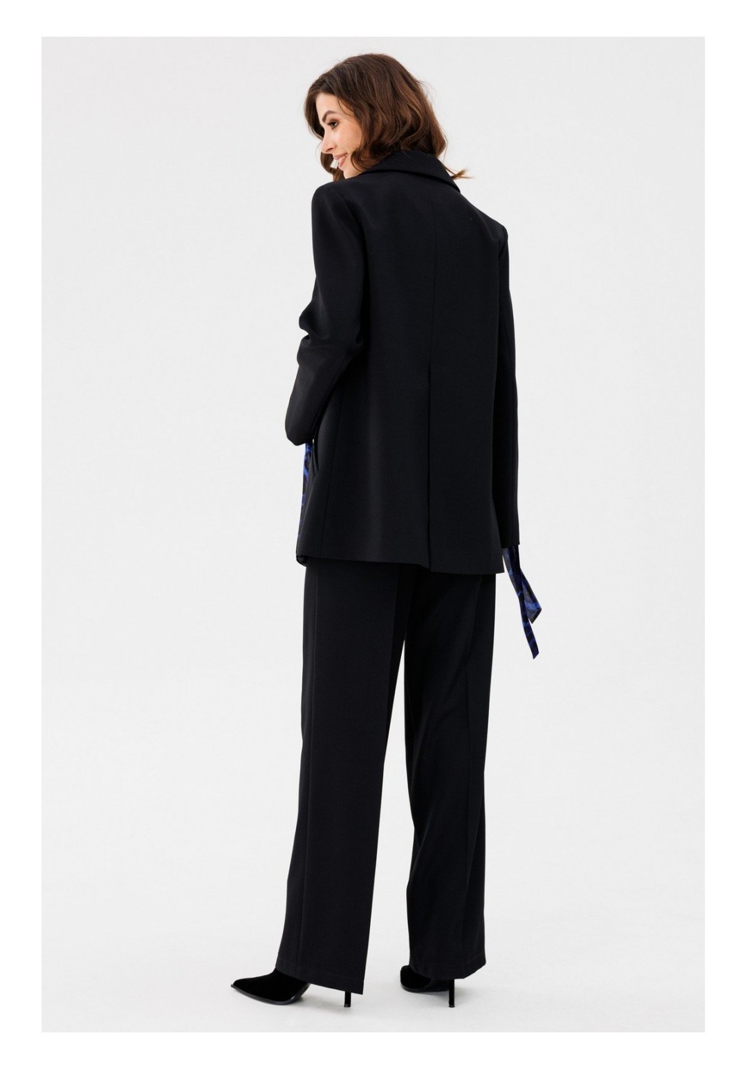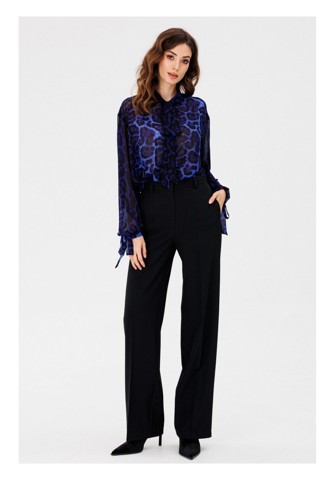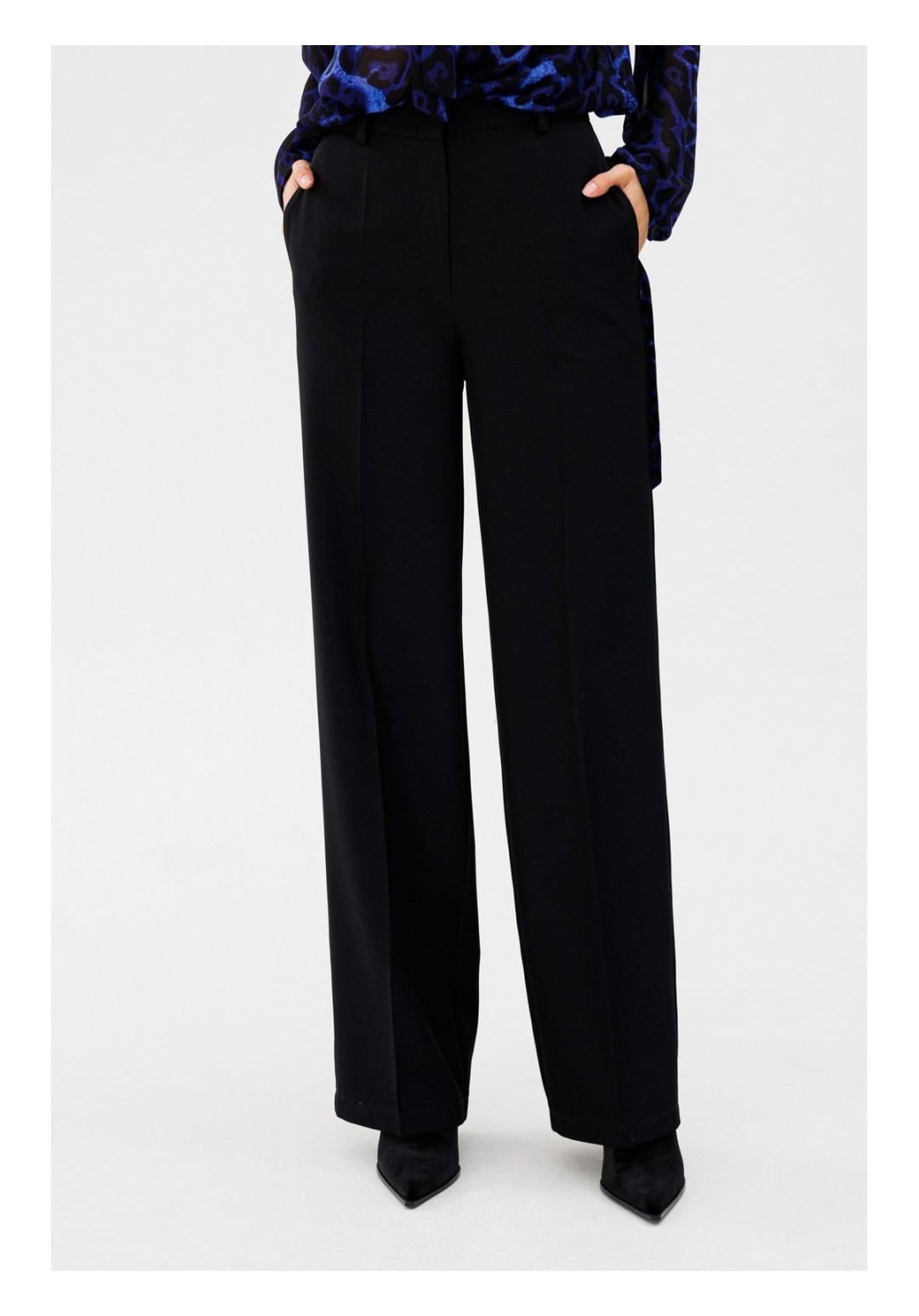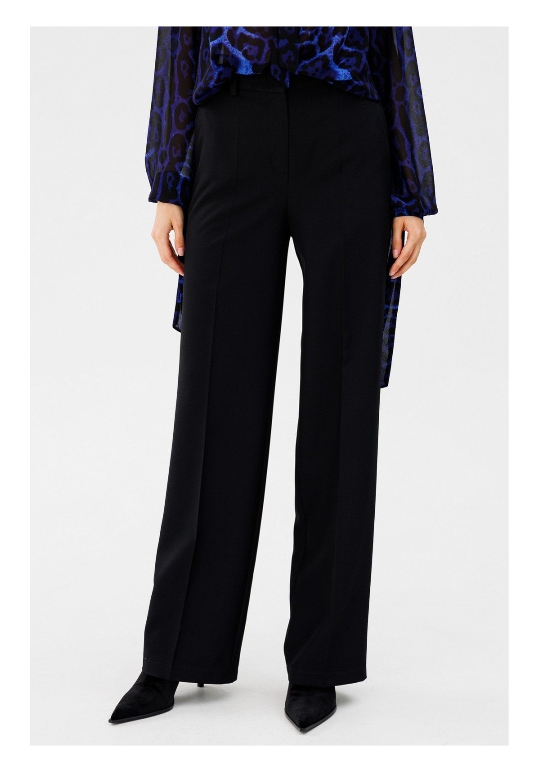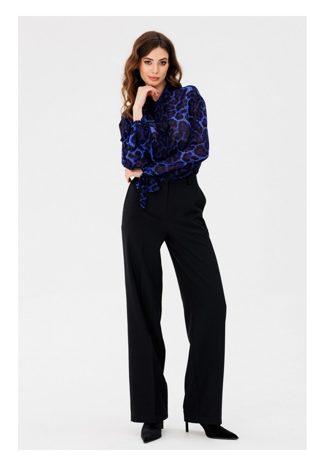Брюки выполнены из костюмной ткани. Брюки прямого покроя, на притачном поясе, длиной в пол. Спереди застежка на молнию с гульфиком, потайную пуговицу и брючный крючок. Карманы боковые с наклонным входом. Передние и задние части брюк заутюжены на кант. Длина брюк с поясом: р.44-48 - 113 см, р.50-54 - 114 см. Гарантийный срок не установлен. ГОСТ 25294-2003
