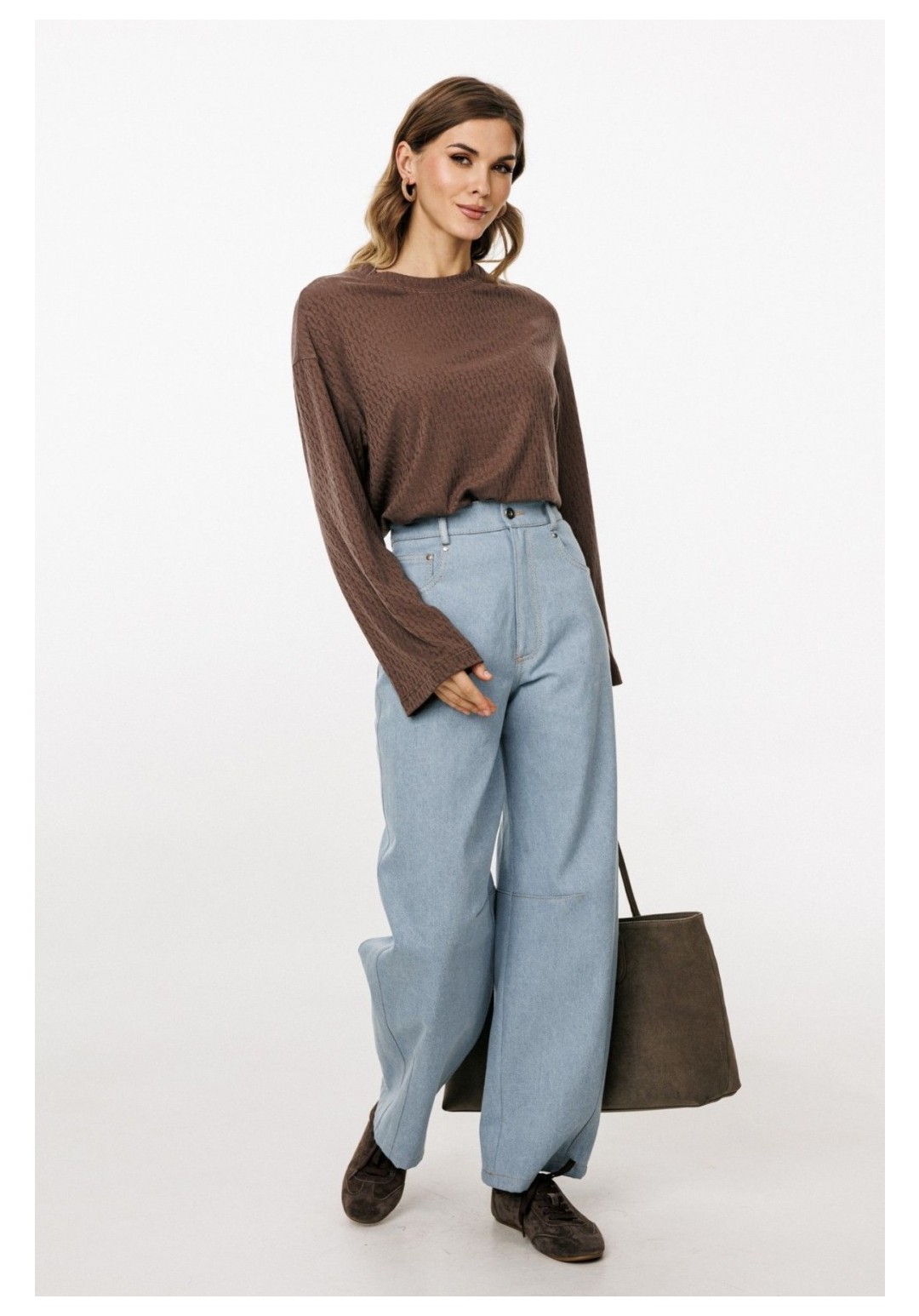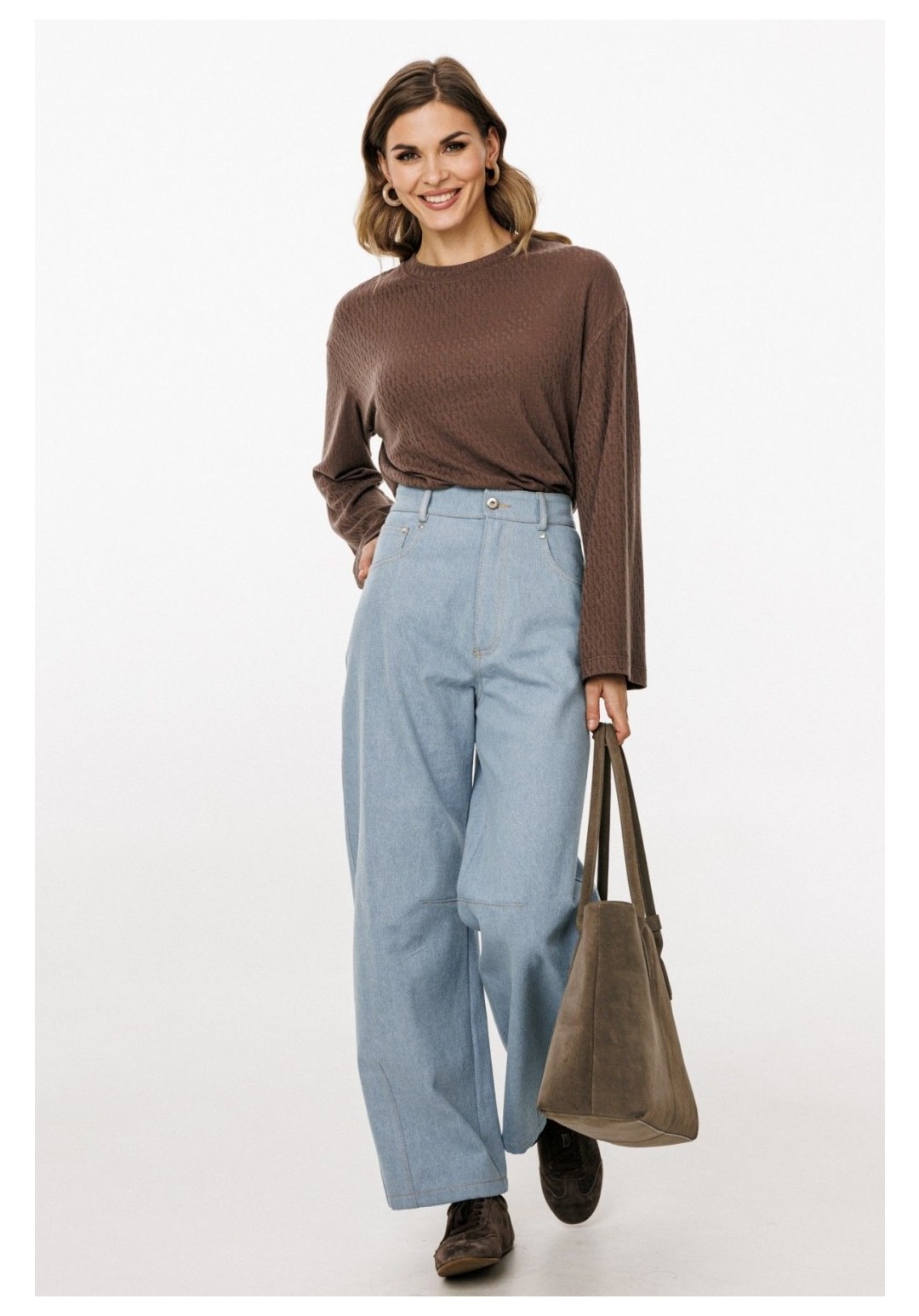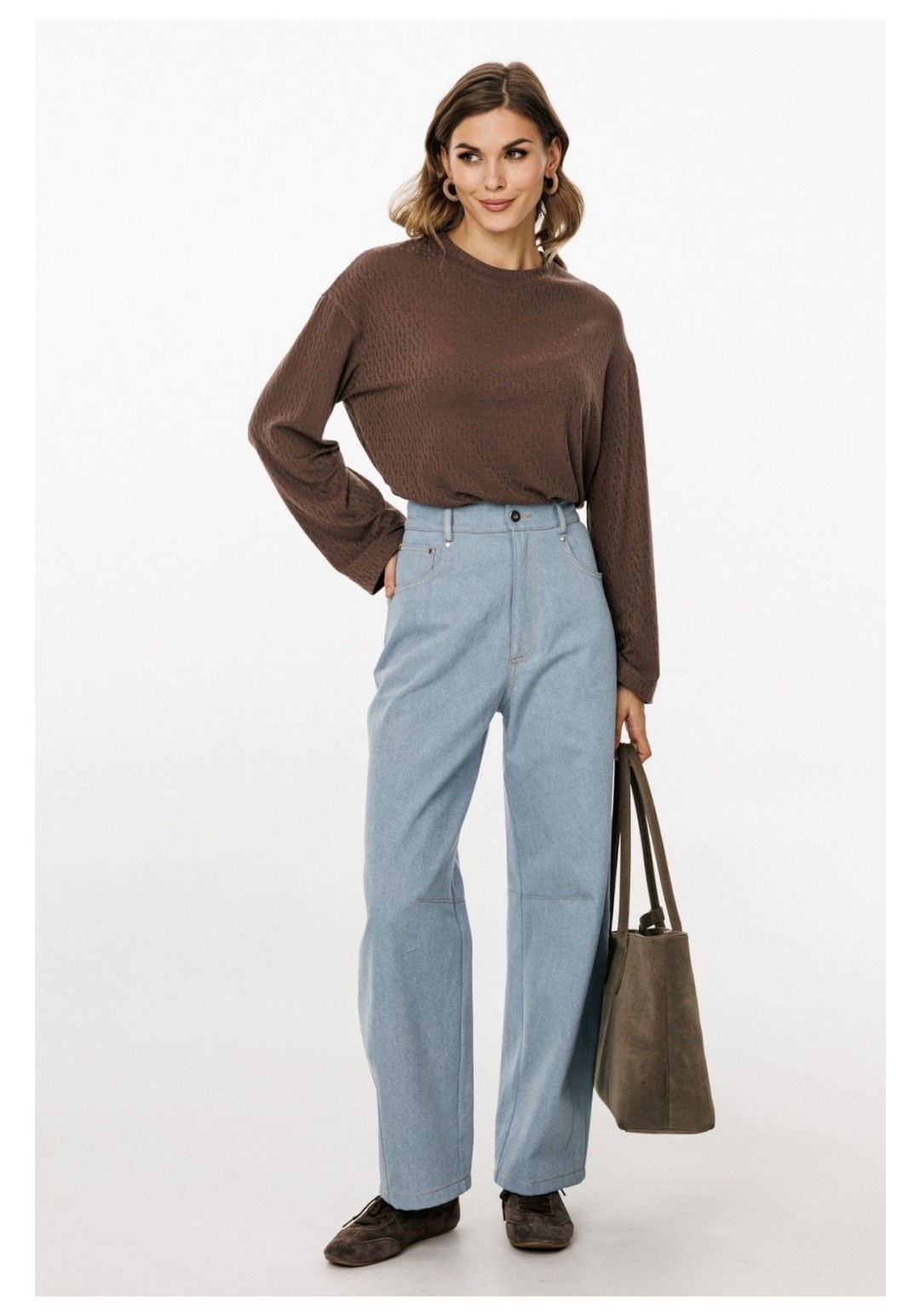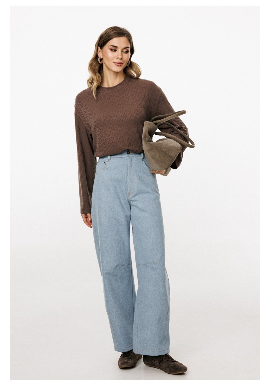 Джинсы-багги выполнены из плотного джинса. Брюки на притачном поясе, длиной до линии щиколотки, расширенные от бедер и слегка зауженные к низу. Спереди боковые карманы с фигурным входом. Застежка на пуговицу и молнию с гульфиком. На задних частях кокетки и накладные карманы. На передней и задней части коленные вытачки. Длина брюк: р.44-48 - 102 см, р. 50-54 - 103,5 см БРЮКИ м. 3043 44 46 48 50 52 54 Длина сбоку с поясом 102 102 102 103,5 103,5 103,5 Объем по талии 75 79 83 87 91 95 Объем по бедрам 106 110 114 118 122 126 Ширина пояса 4 4 4 4 4 4