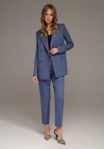 Брюки женские на запах, Выполнены из лёгкой струящейся ткани с заносом задней половинки брюк на переднюю. Изделие на прилегающем поясе-кокетке, застежка - потайная молния (сзади). Брюки декорированы пришивной металлической нашивкой по переду.