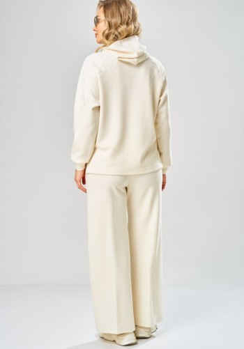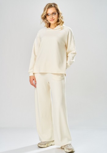 Стильные брюки из экокожи, свободного кроя, слегка заужены к низу, с притачным поясом. Пояс дополнен эластичной тесьмой. Посадка средняя. Брюки дополнены боковыми карманами. Застежка на металлические кнопки и молнию. Длина брюк по боковому шву 94 см
