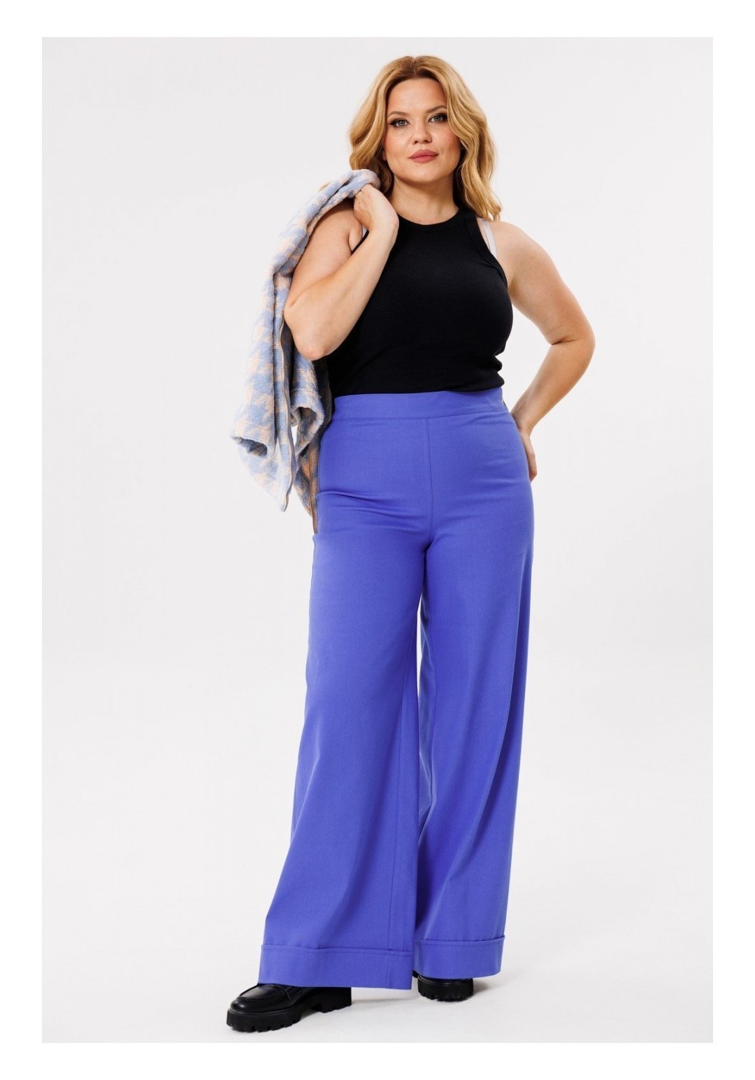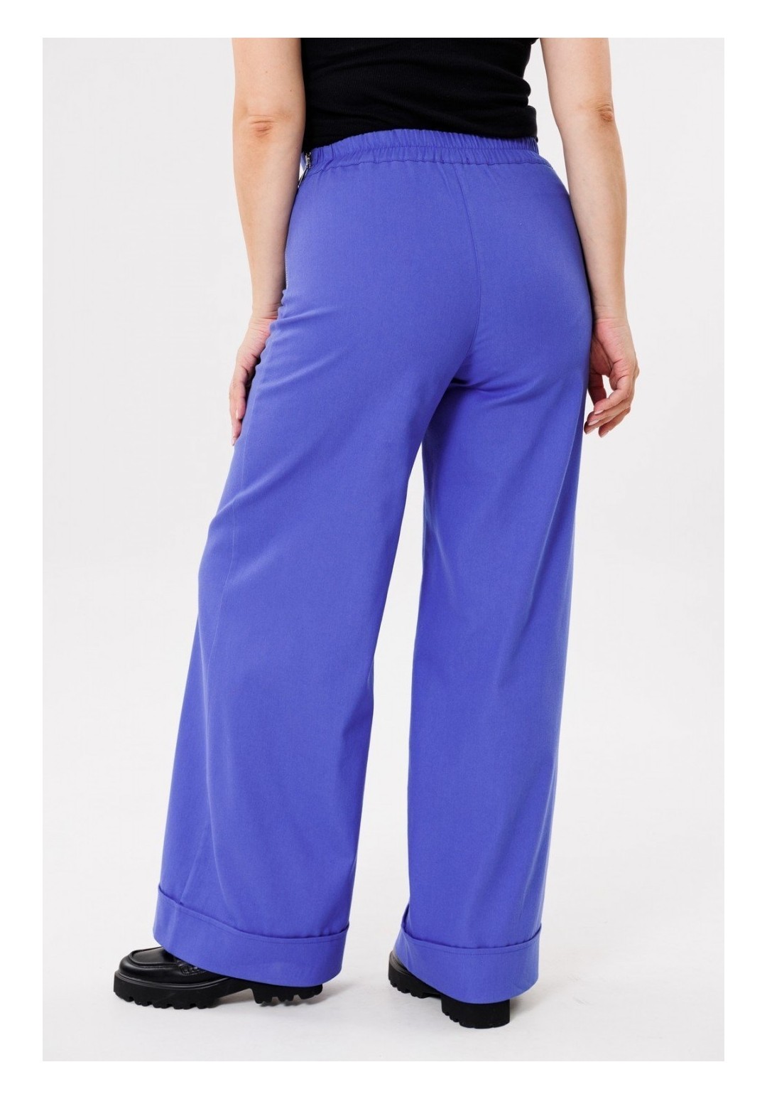 Женские брюки-палаццо – практичный вариант для прогулочных или офисных комплектов, который выгодно смотрится с белыми или цветными блузками, топами, футболками, пиджаками. Изделие выполнено из хлопкового однотонного джинса средней плотности. Брюки идеально сидят на любой фигуре, подчеркивая все достоинства, скрывая недостатки. Изделие на притачном поясе с резинкой сзади, сбоку застежка на молнию. По низу брюк цельнокроеная манжета из широкой подгибки. С данными брюками можно смело создавать стильные образы и они станут незаменимой базой в Вашем гардеробе. Длина брюк по боковому шву 108 см, по шаговому 79 см. Изделие подойдет на рост 170 см.