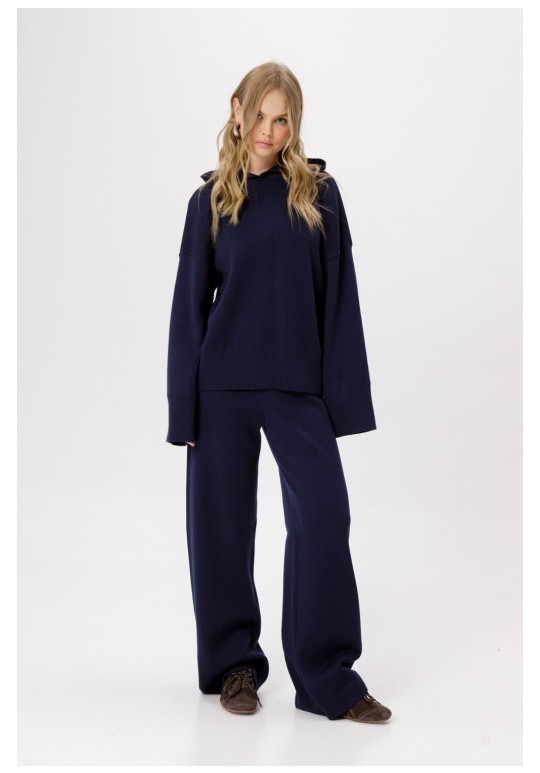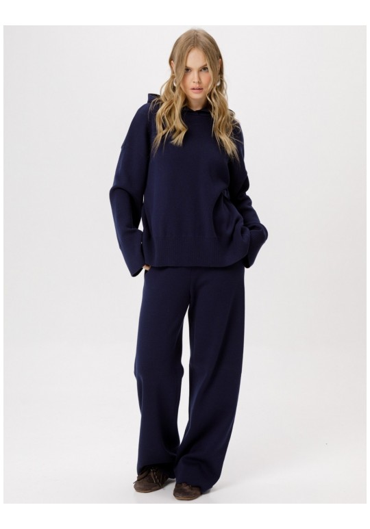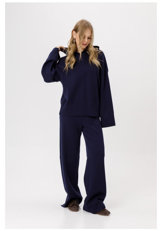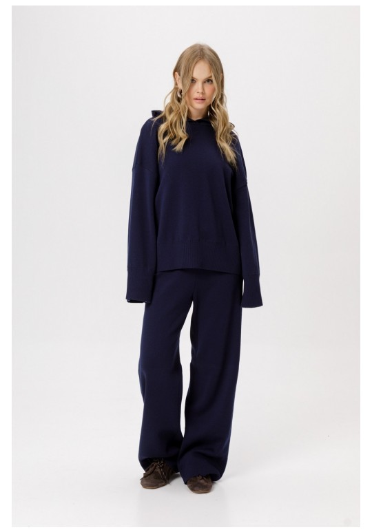 Вязаные прямые широкие брюки из хлопковой пряжи. Детали: высокая посадка, пояс с резинкой, без карманов