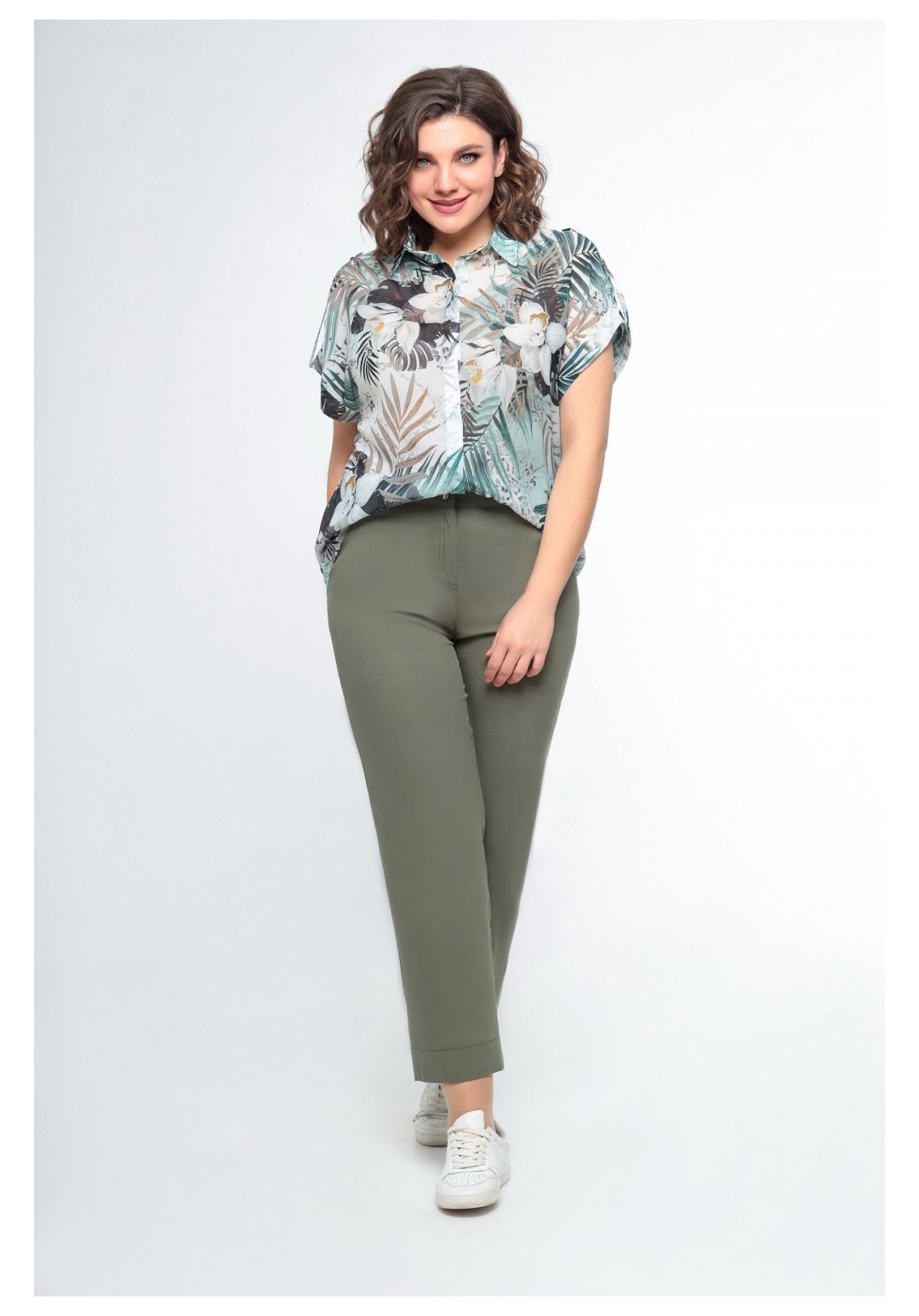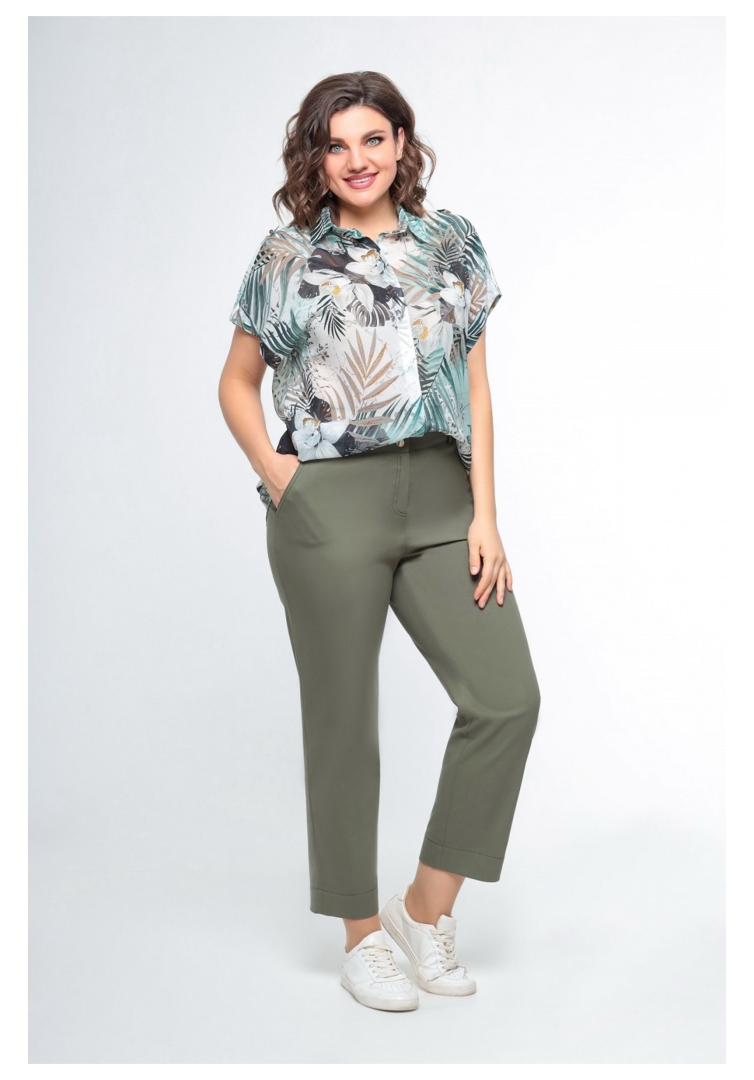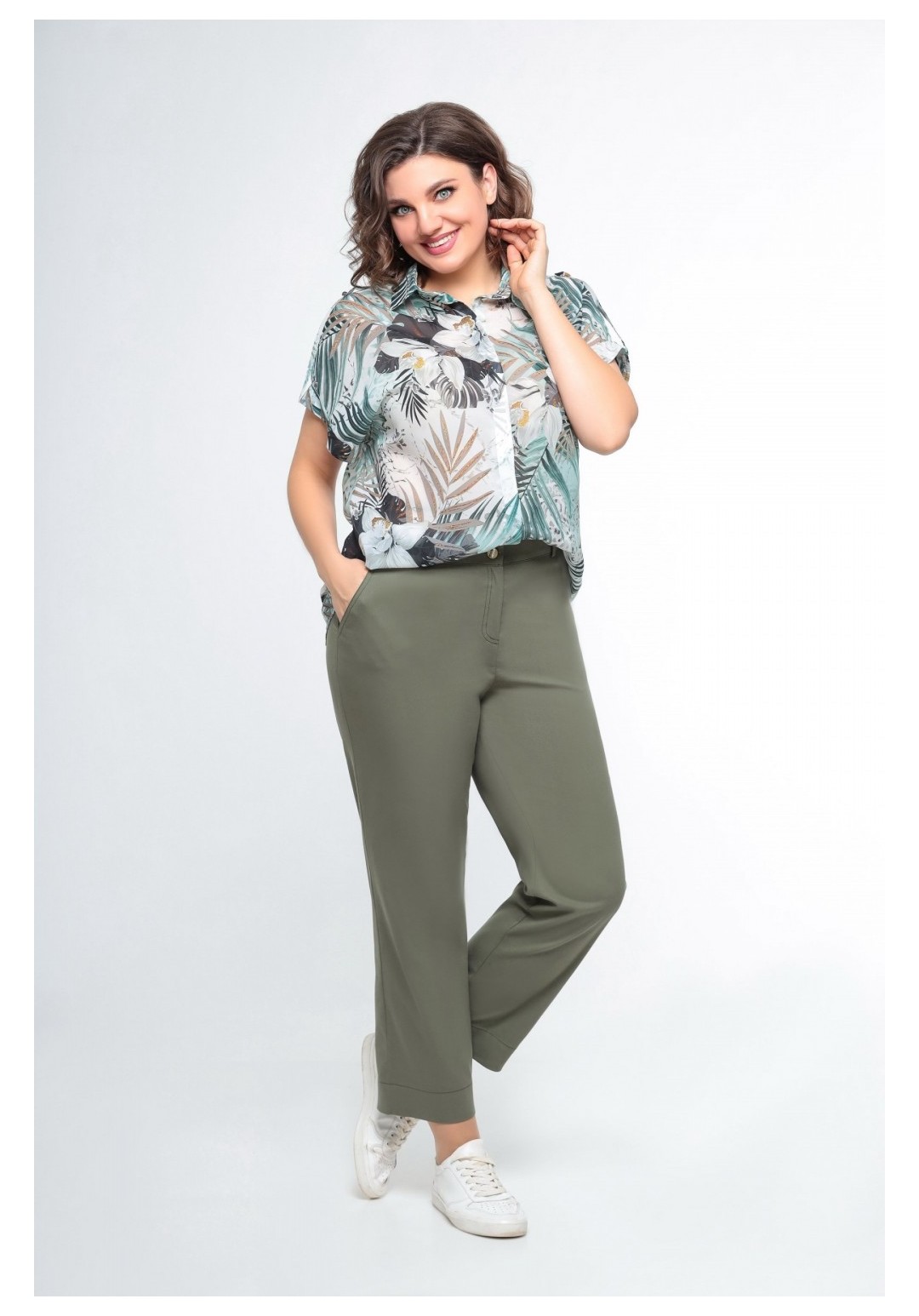 Брюки женские прямого силуэта. Выполнены из турецкого денима. Брюки - с притачным поясом и резинкой по спинке. По переду обработаны боковые карманы. Застёжка - на тесьму-молнию и пробивную пуговицу. По задним половинкам брюк расположены накладные карманы. Длину брюк можно регулировать подворотом. Длина брюк по боковому шву 95см (+/-1см)