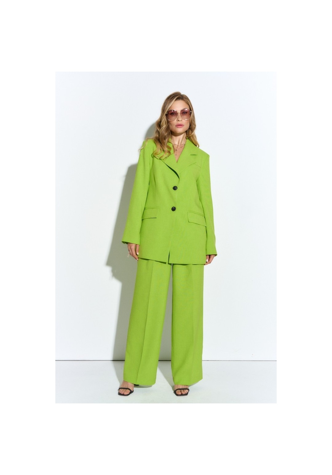 Брюки палацио: высокая посадка, от пояса заложены складки, застежка на молнию и пуговицу, наклонные карманы по переду и листочка-обманка по спинке. Сочетается вместе с жакетом 4350.