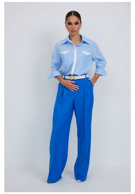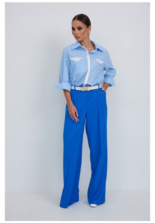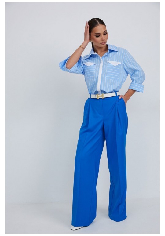 Брюки прямые из костюмной ткани. Верх на поясе со шлевками. Ширинка на молнии и удлиненный пояс со скрытой застежкой на пуговицу и крючок. Складки спереди, диагональные боковые карманы и задние прорезные листочки. 44 р-р: ОТ - 73 см., ОБ - 96 см. (с учетом складок - 106 см.) 46 р-р: ОТ - 77 см., ОБ - 100 см. (с учетом складок - 110 см.) 48 р-р: ОТ - 81 см., ОБ - 104 см. (с учетом складок - 114 см.) 50 р-р: ОТ - 85 см., ОБ - 108 см. (с учетом складок - 118 см.) 52 р-р: ОТ - 89 см., ОБ - 112 см. (с учетом складок - 122 см.)