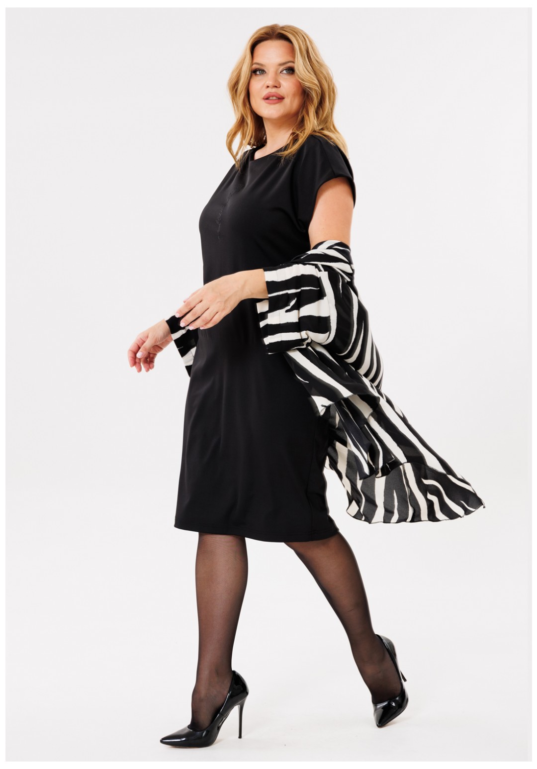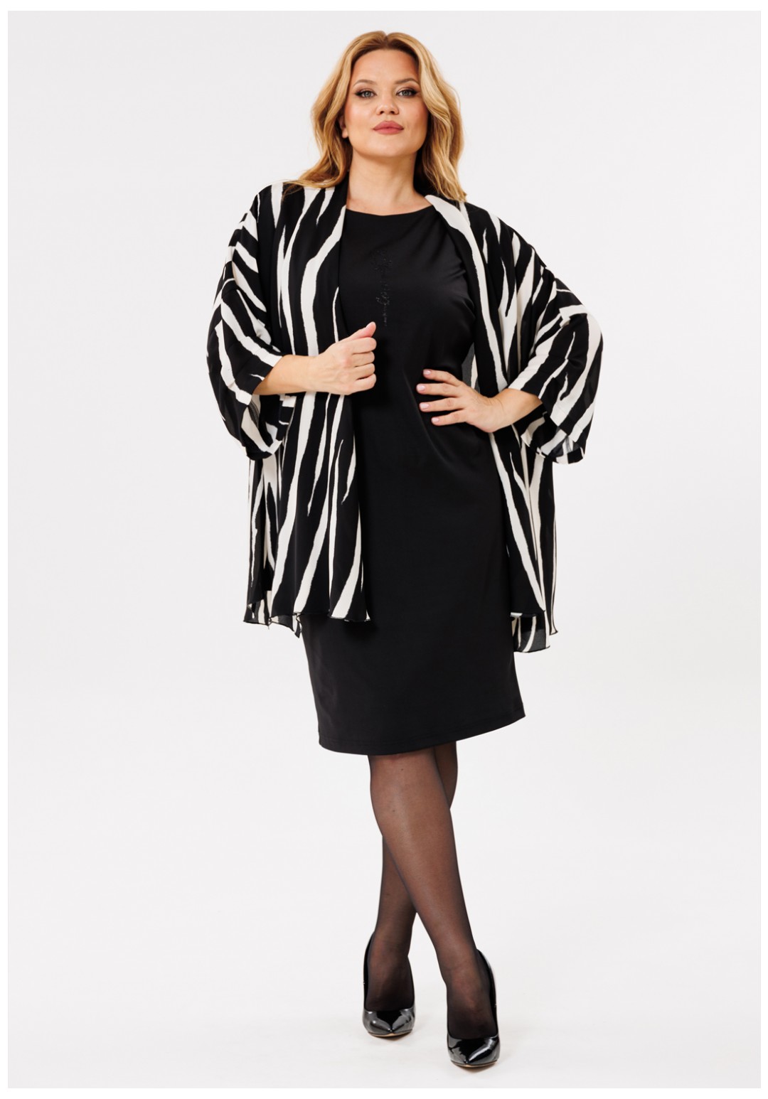 Нарядный женский комплект, который точно выделит вас среди окружающих. Данный комплект состоит из шифоновой блузы и элегантного платья-футляра. Блузка распашная по переду трапециевидного силуэта, со спущенным плечом с длиной чуть ниже бедра, с втачным одношовным рукавом 3/4 и фигурным низом. Платье является ярким представителем повседневного гардероба — оно приталенное, длиной до колена с округлой горловиной, коротким спущенным рукавом. По переду платье украшено принтом в виде розы, что придает изюминку всему образу. Этот женский наряд отлично подойдет для тех, кто ищет сочетание утонченной классики и современного стиля. Благодаря своему универсальному дизайну комплект можно легко комбинировать с другими вещами из вашего гардероба, создавая разнообразные стильные образы.