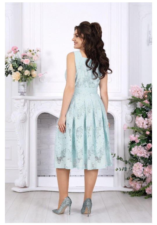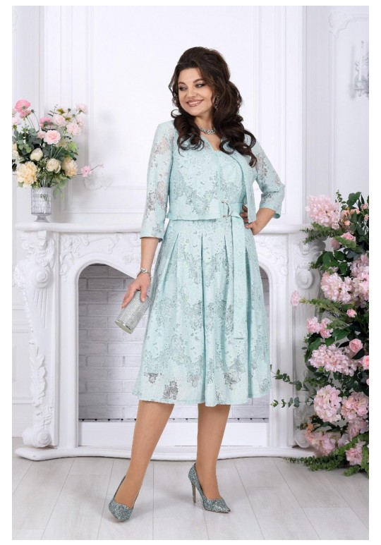 Лёгкость кружева, изящество силуэта и настроение праздника — этот наряд создан, чтобы вы чувствовали себя особенной в любой важный момент. Праздничный костюм двойка с платьем — идеальное сочетание утончённости и комфорта. Сарафан из хлопкового кружева мягко ложится по фигуре, подчёркивая женственность, а встречные складки добавляют образу лёгкости и благородной динамики. Квадратный вырез красиво открывает линию плеч и шеи, создавая элегантный вечерний акцент. Пояс с декоративной пряжкой-полукольцами деликатно выделяет талию, формируя гармоничный силуэт. Блузка свободного кроя из натурального хлопкового гипюра дополняет образ, добавляя ему завершённость и универсальность. Рукав 3/4 делает комплект уместным как для весенних, так и для летних мероприятий, а лёгкая фактура ткани придаёт наряду воздушность и особый шарм. Этот нарядный комплект прекрасно подойдёт для торжеств, праздников, юбилеев и вечерних выходов. При этом он остаётся удобным и практичным: натуральная ткань приятна к телу, а продуманный крой обеспечивает комфорт на протяжении всего дня. Модель идеально садится на разные типы фигур, включая большие размеры и модели для полных, аккуратно скрывая нюансы и подчёркивая достоинства. Универсальность комплекта позволяет легко трансформировать образ: носите сарафан самостоятельно для лёгкого дневного выхода или добавляйте блузку — и перед вами уже полноценный вечерний, нарядный комплект. Белорусское качество — это внимание к деталям, аккуратный пошив и безупречная посадка, которые делают этот костюм не просто одеждой, а настоящим украшением вашего гардероба. Комплект женский 2-х предметный, состоящий из блузки и сарафана. Сарафан женский, полуприлегающего силуэта, выполнен из хлопкового гипюра. Модель на хлопковой подкладке без рукавов. Сарафан отрезной по линии талии со встречными складками. Спинка и перед с рельефами, направленными от плечевых швов. В левом боковом шве обработана застежка на потайную тесьму-молнию (35 см). В комплекте есть пояс с пряжкой -полукольца в золоте. Горловина квадратной формы, углубленная спереди. Длина сарафана от талии до низа – 70,0 см (46-54 р-р). Блузка свободного кроя, выполнена из хлопкового гипюра. Модель с втачным рукавом 3/4. Горловина и борта, окантованы узкой косой бейкой из х/б ткани. Длина блузки (по середине спинки) – 40 см (46-54 р-р)