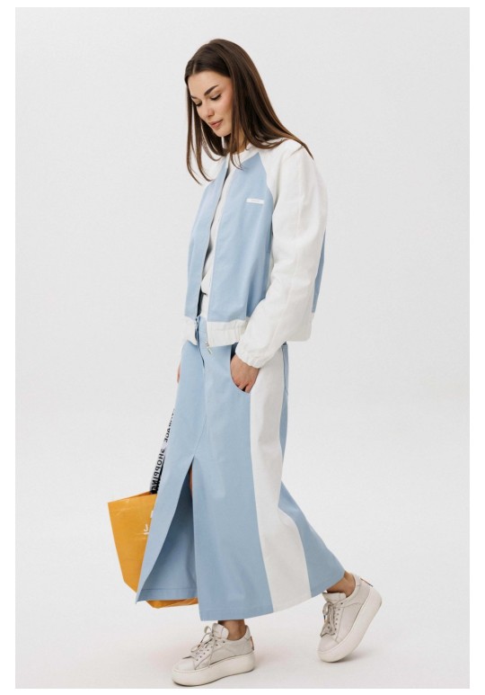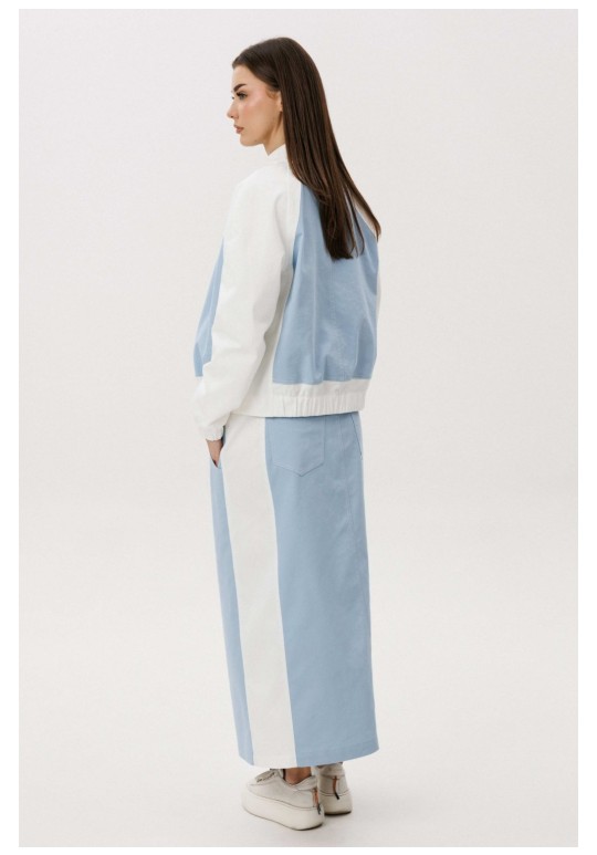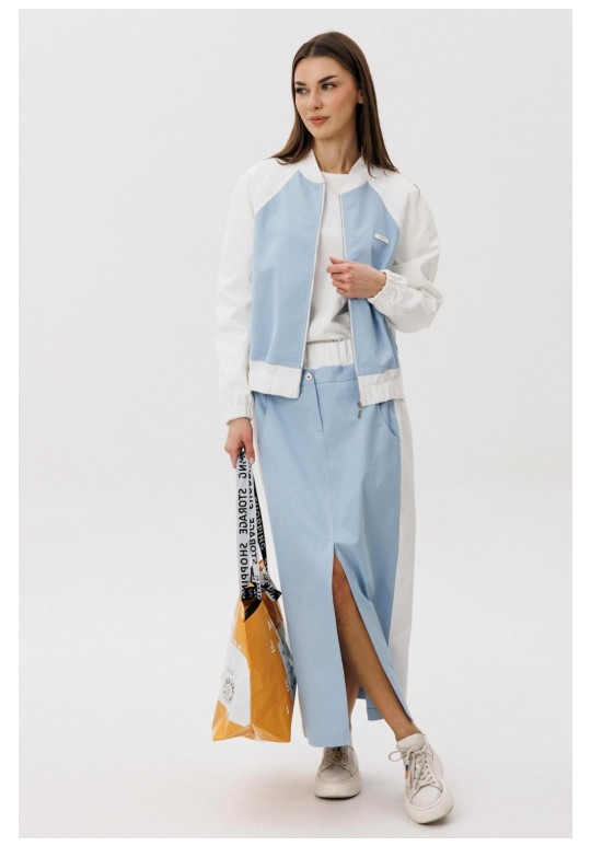 Женственный и современный юбочный комплект в оттенке Тиффани — идеальное сочетание комфорта и утончённой простоты. Лаконичный дизайн и свежая цветовая палитра делают образ лёгким, актуальным и универсальным для повседневной жизни. Особенности модели: Юбка миди прямого кроя с аккуратным разрезом спереди Комфортная посадка по талии Лёгкая куртка на молнии с контрастными белыми рукавами Минималистичный дизайн без лишнего декора Комплект выполнен из качественного хлопчатобумажного полотна. Натуральная ткань обеспечивает воздухопроницаемость, мягкость и комфорт в течение всего дня. Материал держит форму, сохраняя аккуратный и стильный силуэт. Юбка с разрезом добавляет образу динамики и лёгкой женственности, а укороченная куртка подчёркивает линию талии и делает силуэт более выразительным. Комплект отлично сочетается с кроссовками, кедами или лаконичной обувью в спортивном стиле. Преимущества: Натуральный хлопковый состав Актуальная длина миди Свежий оттенок Тиффани Универсальность для городских образов Юбочный комплект Tiffany — это баланс комфорта, стиля и лёгкости. Идеальный выбор для тех, кто хочет выглядеть современно и чувствовать себя свободно каждый день.
