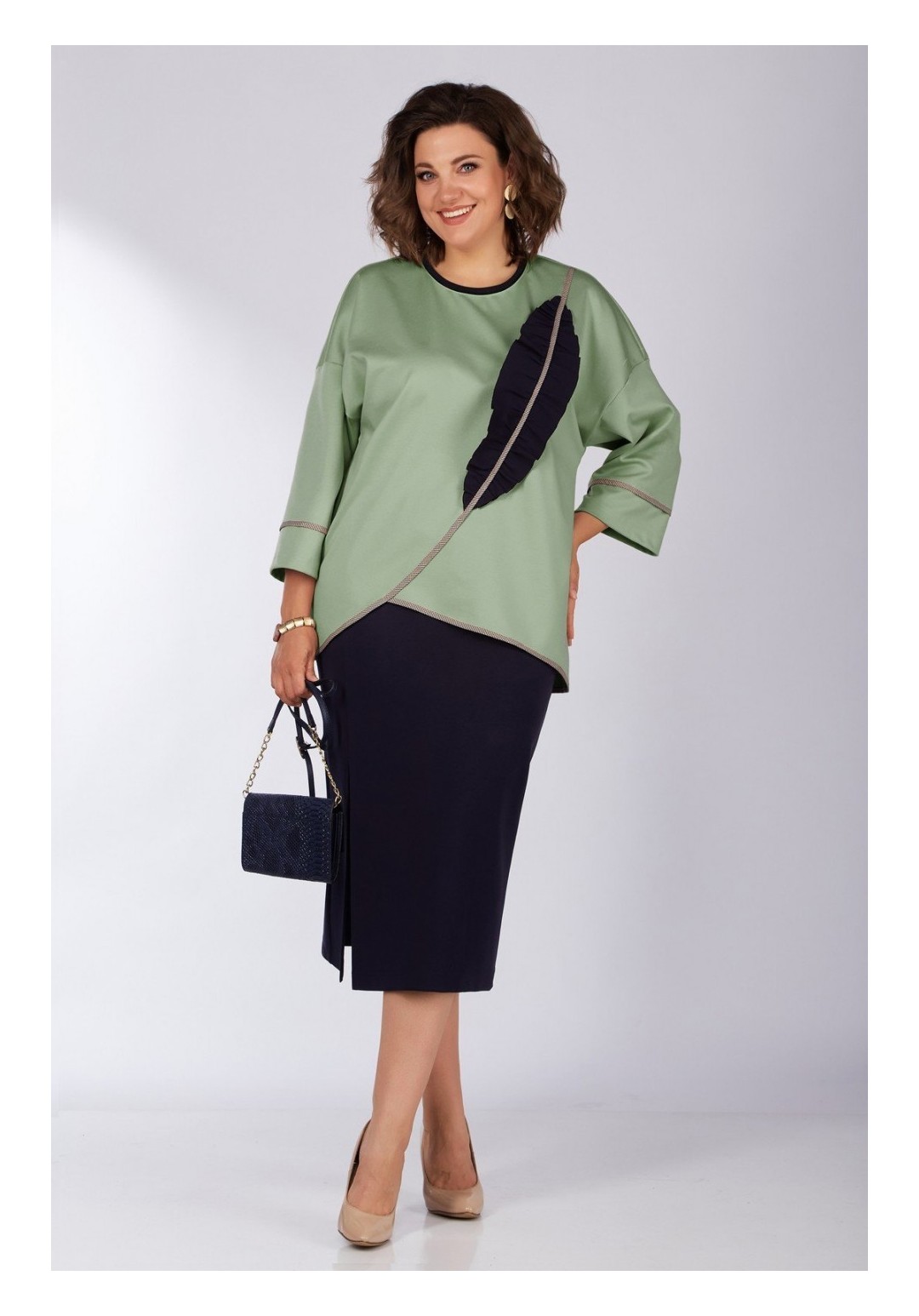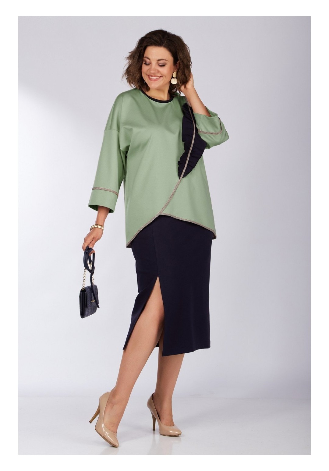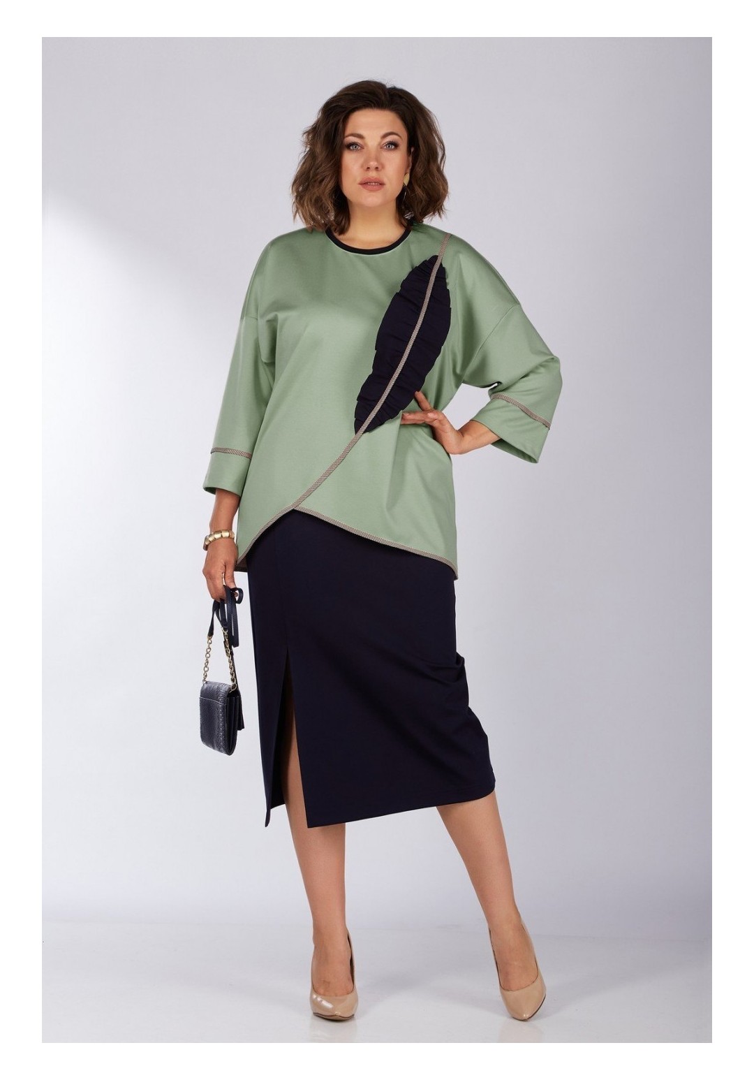 Красивый и стильный костюм в котором вы можете пойти не только на прогулку, но и ходить в нем на работу, по делам, выбираться в кино или кафе. В комплекте одежды будет комфортно осенью, весной и летом. Костюм состоит из элегантнной длинной юбки с высоким подрезои по ноге, на резинке, с карманами и стильного дизайнерского джемпера с асимметричным декоративным подрезом и отделкой, делающие образ этого костюма интересным и запоминающимся. Рукав втачной на спущенной пройме с отрезной манжето. Этот стильный костюм выполнен из трикотажа высокого качества, станет базовой вещью вашего гардероба. Подойдет для девушек, ценящих удобство, а также комфорт, красоту и стиль. Костюм LADY SECRET - твое лучшее решение! Длина джемпера по спинке-68см, длина по середине полочки -53см, длина рукава-34см, длина юбки-81см