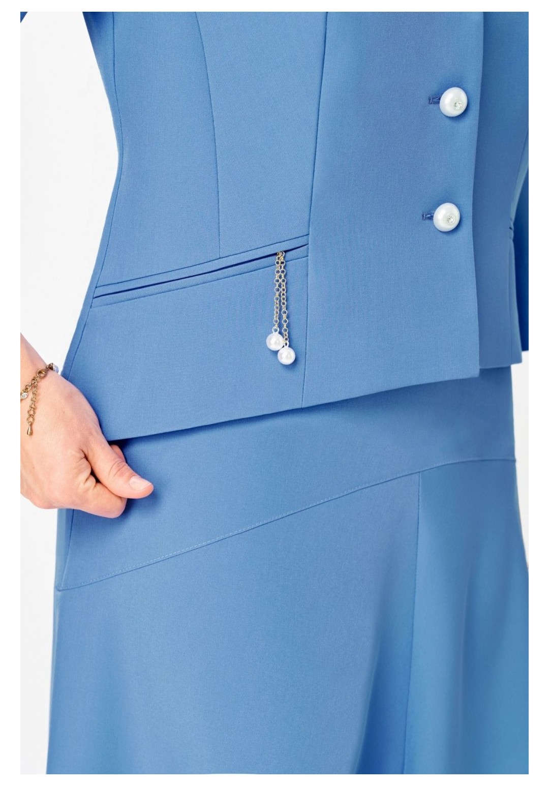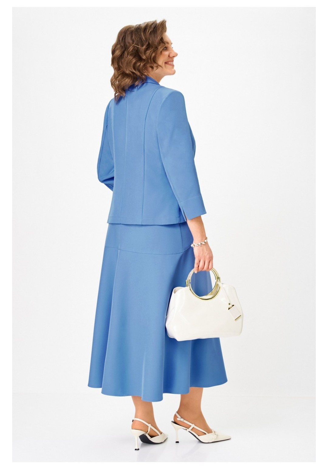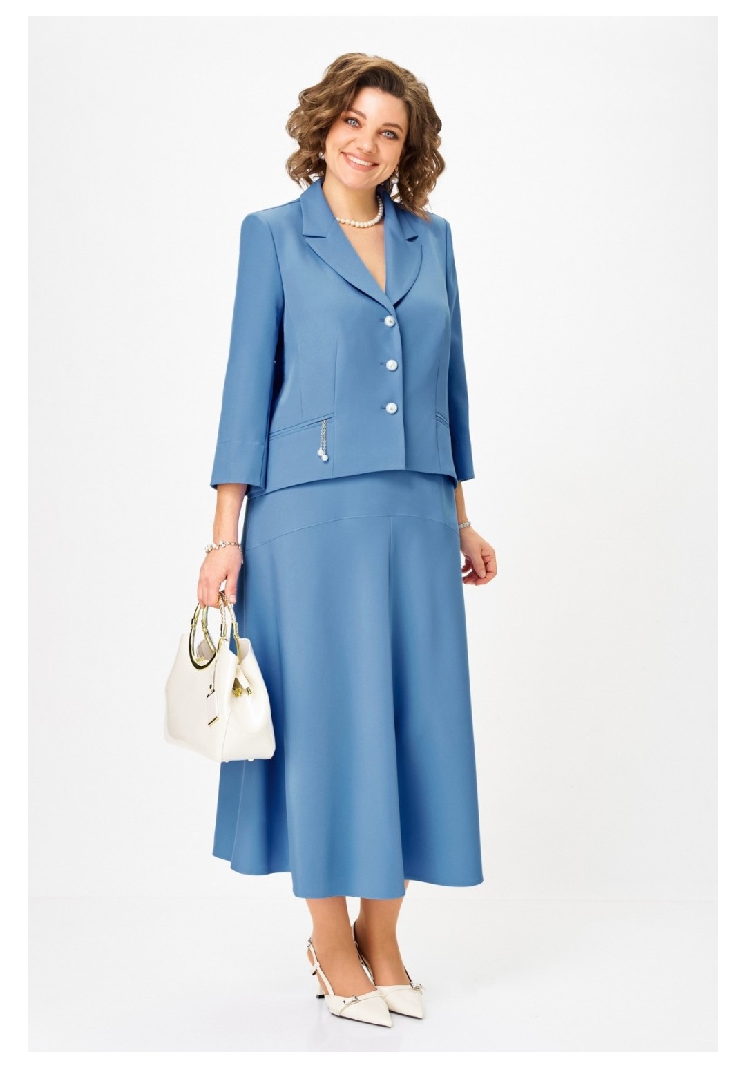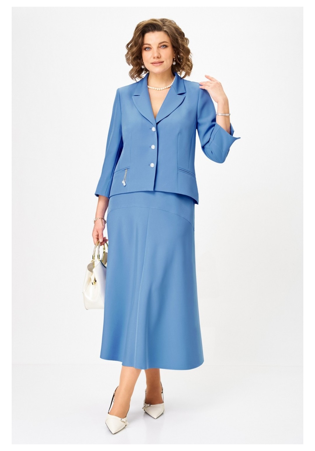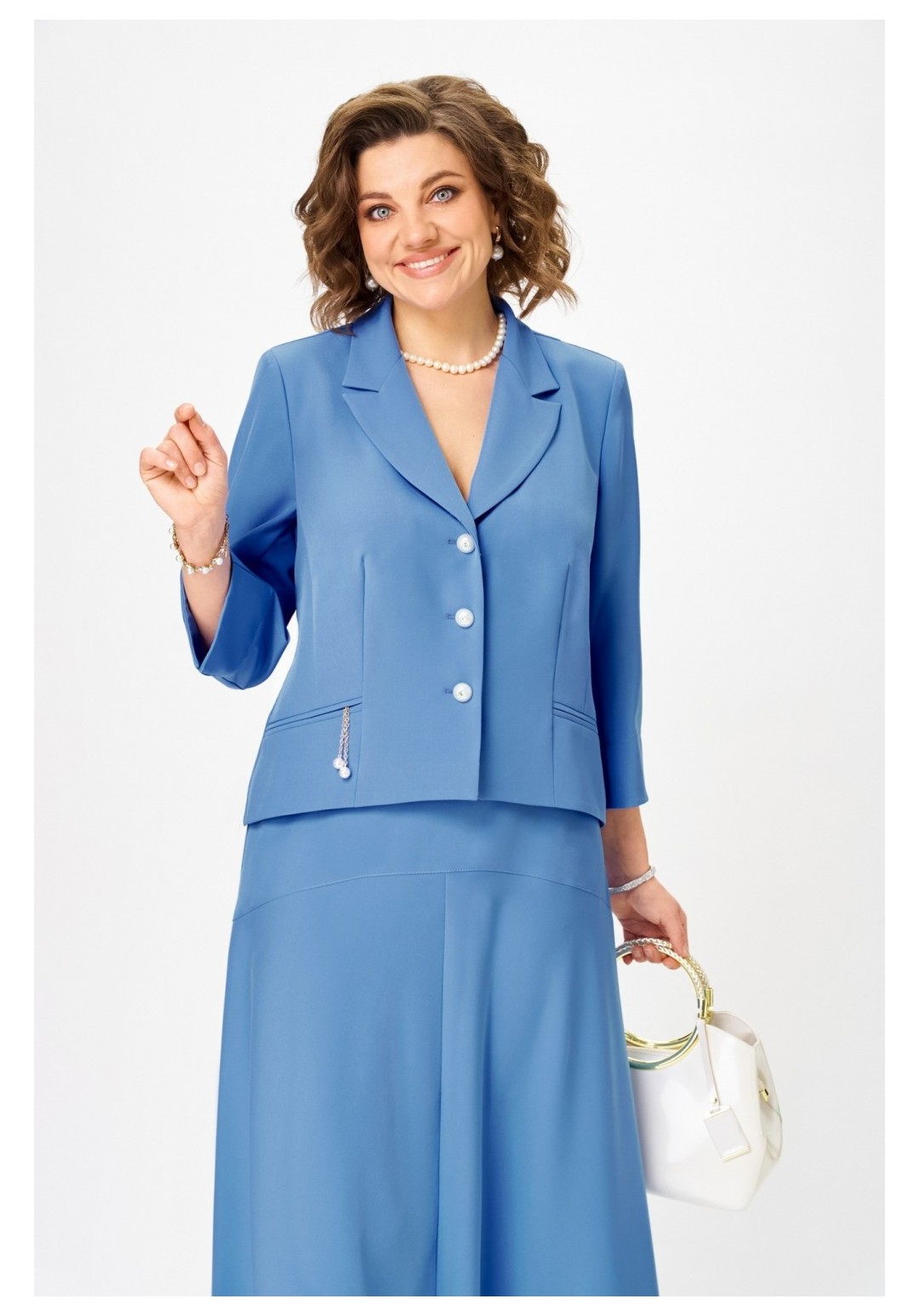 Шикарный юбочный женский костюм для любого случая ! Хорош как праздничный наряд для ценителей лаконического стиля, сдержанный , но одновременно элегантный, сочетающий четкие линии и современные тенденции сделает ваш образ премиально- модным в повседневной жизни ! Жакет , полуприлегающего силуэта с аккуратно отложным воротником и лацканами , декоративными прорезными рамками с легким декором, рукав втачной укороченный с отворотом, низ жакета фигурный с прогибом , застежка на петли и пуговицы. Полочка жакета на подкладке. Юбка с легким , мягко падающим расклешением без подкладки , на фигурной кокетке с поясом и боковыми резинками по линии талии , застежка молния . Длина жакета - рр 50,52 - 60см, рр 54,56 - 63см Длина рукава - 51см Длина юбки - 90см