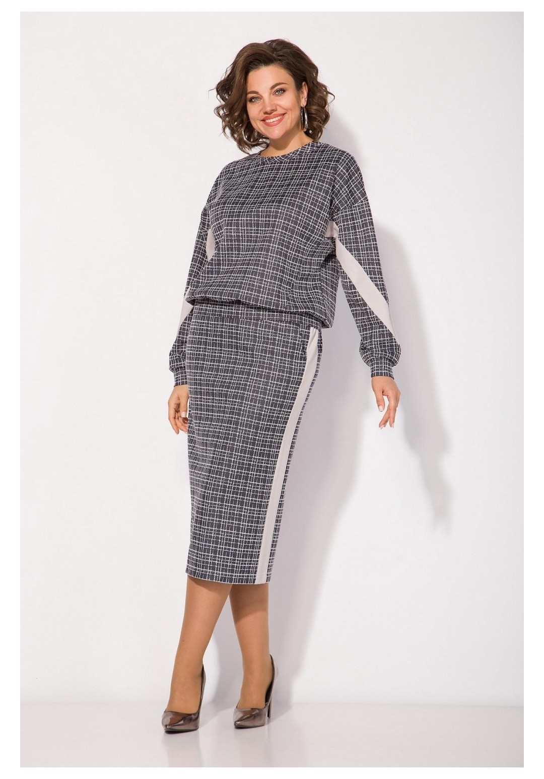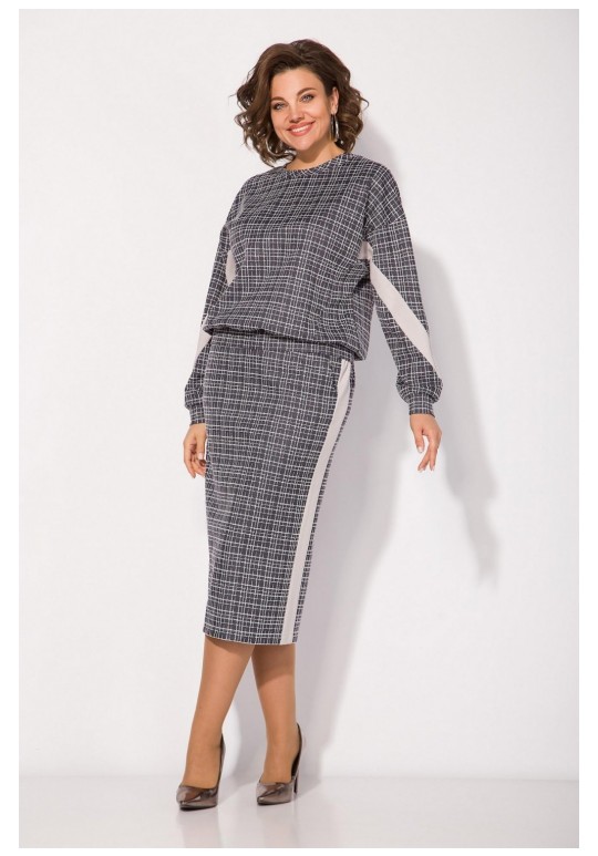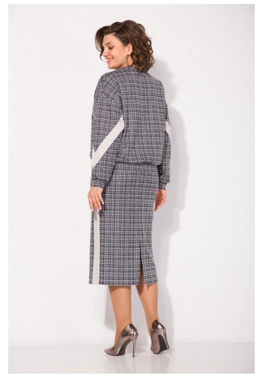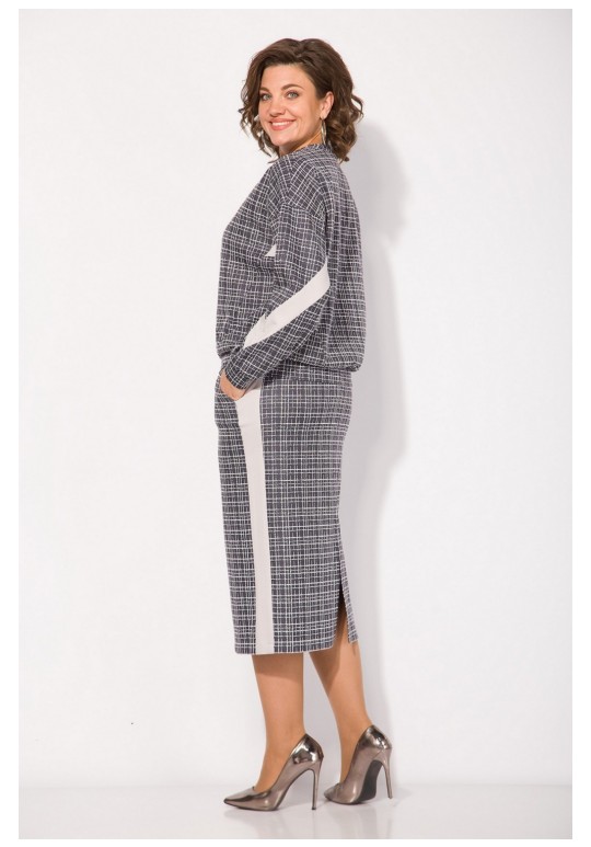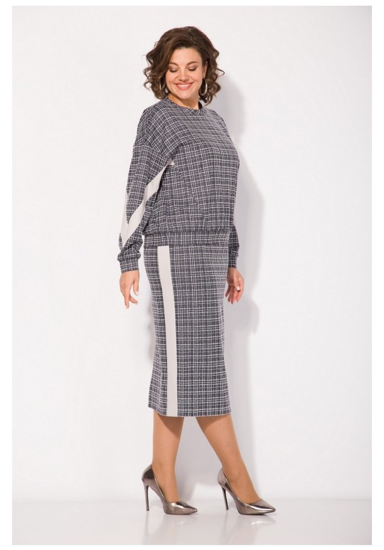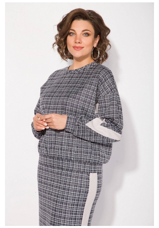 Неповторимый стиль и удивительный комфорт умело сочетаются в этом женском трикотажном костюме с юбкой. Приталенный силуэт юбки с высокой посадкой, а также свободный крой свитшота сделает образ лаконичным, поможет всегда оставаться в тренде. Продольные лампасы по рукаву и юбке из однотонной ткани зрительно стройнят и вытягивают силуэт. Юбка на питачном поясе с круговой резинкой имеет боковые карманы. Сзади предусмотрен разрез по среднему полотнищу юбки. Юбка на тикотажной подкладке, что создает дополнительный комфорт в носке! Этот костюм идеально подходит как для офисной среды, так и для обеденного свидания или других повседневных мероприятий. Вы сможете легко создать разнообразные образы, изменяя аксессуары и обувь. В нем каждая сможет чувствовать себя комфортно. Длина свитшота – 60 см, длина рукава – 62 см. Юбка – 68 см.