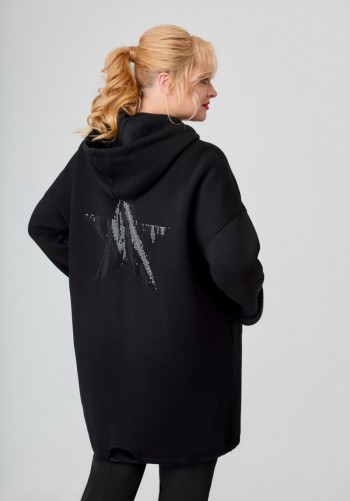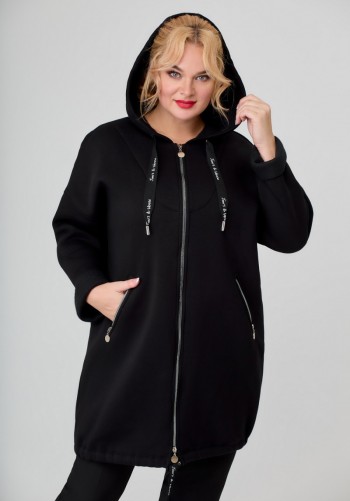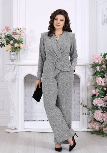 Блузка с округлым вырезом горловины и планкой поло с пуговицами по переду. Перед с отрезной деталью по низу и декоративной молнией. Спинка с потайной молнией в среднем шве и талиевыми вытачками. Рукава втачные. Юбка на поясе с резинкой. Юбка на подкладке. Блузка длиной по спинке – 61см, длина рукава – 23.5см. Длина юбки вдоль середины переднего полотнища – 63см
