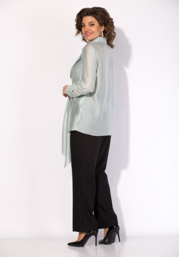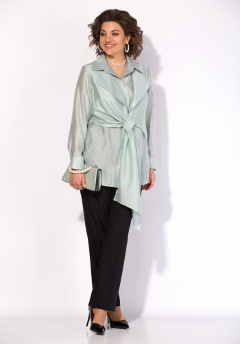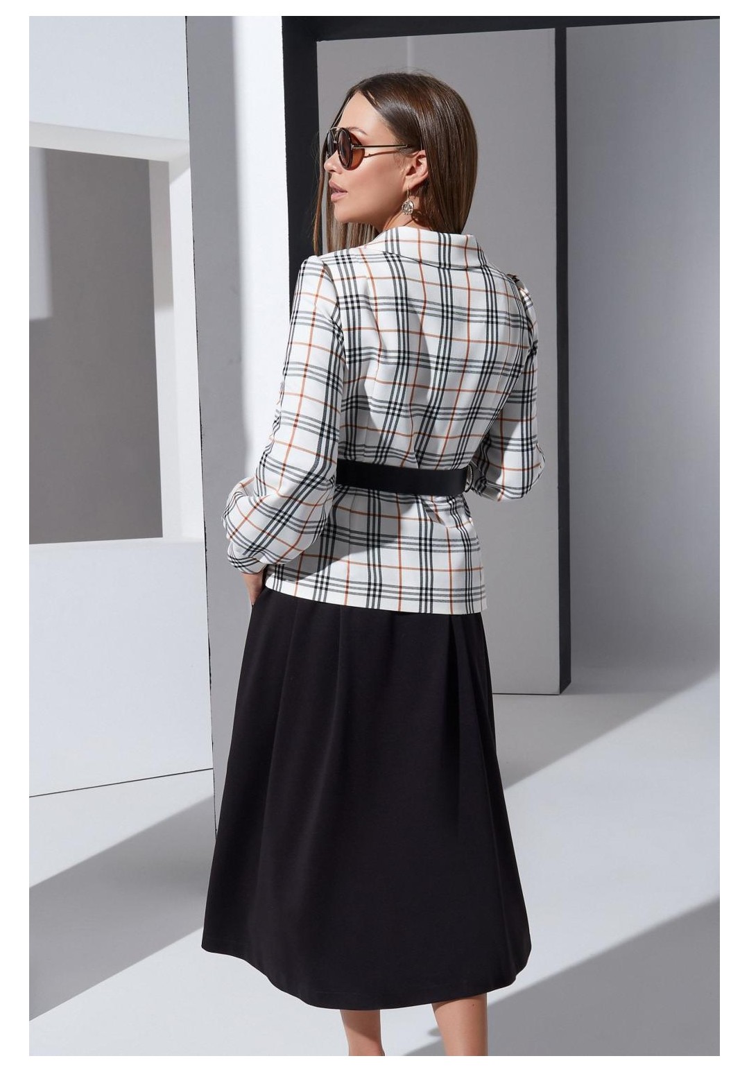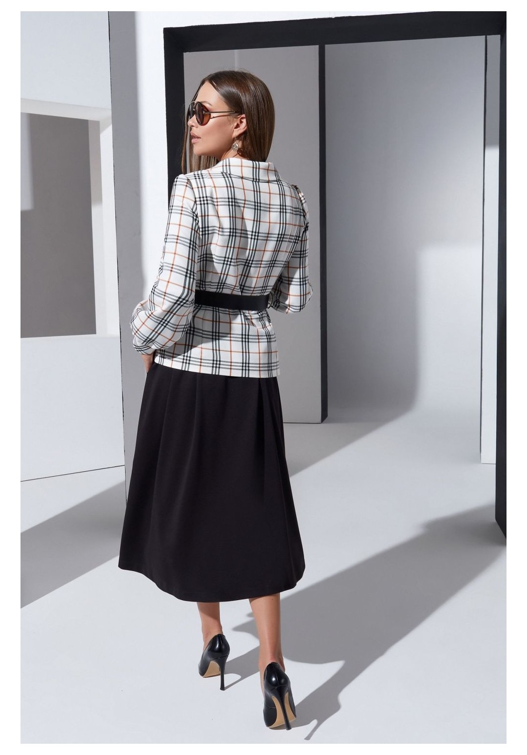 Костюм юбочный Жакет со стояче – отложным воротником, ремнём по талии и центральной застёжкой на петли и пуговицы. Перед с карманами с листочками в нижней части. Спинка с талиевыми вытачками. Рукава втачные с манжетами по низу. Жакет на подкладке. Юбка на притачном поясе. Переднее полотнище с застёжкой на петли и пуговицы, наклонными карманами к боковым швам и складками от пояса. Заднее полотнище со складками от пояса. Юбка на подкладке. ВОЗМОЖНА ЗАМЕНА ФУРНИТУРЫ НА АНАЛОГИЧНУЮ ТАКОГО ЖЕ КАЧЕСТВА.