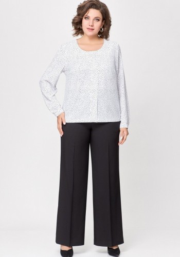 Жакет полуприлегающего силуэта. По переду нагрудные вытачки, отрезная кокетка и фигурный вырез горловины. По спинке застежка на потайную тесьму-молнию в среднем шве, талиевые вытачки, разрезы в боковых швах. Рукав втачной расширенный книзу за счет волана рукава и французского кружева, расположенного под воланом. Особую индивидуальность жакету придают съёмные элементы, выполненные из репсовой тесьмы, перьев и декоративного цветка. Юбка-карандаш на текстильной подкладке, со шлицей, на притачном поясе. Застежка юбки на потайную тесьму-молнию и петлю/пуговицу в среднем шве заднего полотнища. Жакет из ткани с эффектом 3D (стрейчевый атлас с напылением цвета бронзы и наложением кружева), юбка из костюмно-плательной ткани.