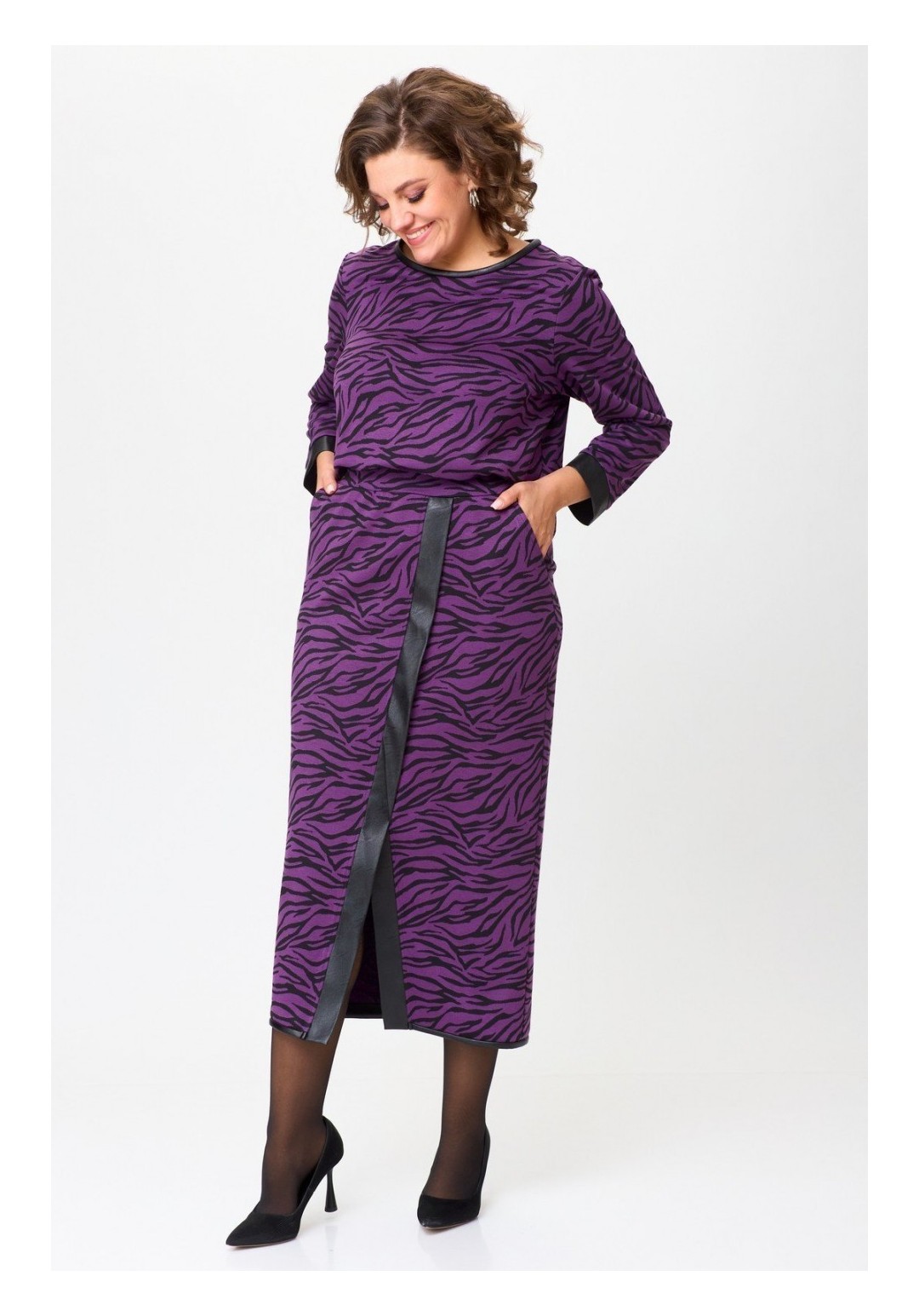 Универсальный и удобный женский юбочный комплект. Данный комплект отличный вариант для повседневной носки. Изделие состоит из джемпера и длинной юбки. Комплект выполнен из вискозного трикотажа с кожаной отделкой. Джемпер прямого полуприлегающего силуэта длиной до бедер, с круглым вырезом горловины. По переду нагрудные вытачки и два функциональных накладных кармана. Спинка джемпера разрезная с застежкой на тесьму-молнию. Рукав длиной 3/4. Юбка прямая длиной макси с имитацией запаха по переду, задняя часть цельная. Юбка на притачном поясе с резинкой, в боковых швах карманы. С данным комплектом можно смело создавать стильные образы как вместе, так и по отдельности. Длина джемпера по спинке 59 см, длина рукава 54 см. Длина юбки по боковому шву 93 см. Изделие подойдет на рост 170 см.