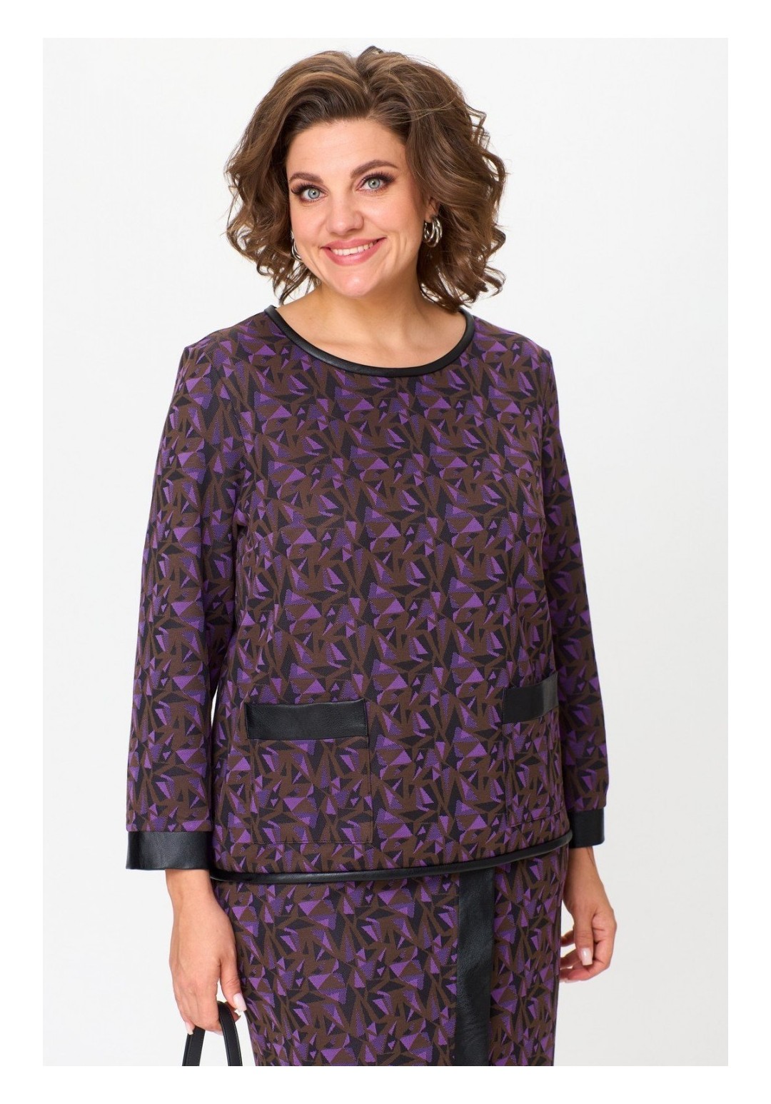 Универсальный и удобный женский юбочный комплект. Данный комплект отличный вариант для повседневной носки. Изделие состоит из джемпера и длинной юбки. Комплект выполнен из вискозного трикотажа с кожаной отделкой. Джемпер прямого полуприлегающего силуэта длиной до бедер, с круглым вырезом горловины. По переду нагрудные вытачки и два функциональных накладных кармана. Спинка джемпера разрезная с застежкой на тесьму-молнию. Рукав длиной 3/4. Юбка прямая длиной макси с имитацией запаха по переду, задняя часть цельная. Юбка на притачном поясе с резинкой, в боковых швах карманы. С данным комплектом можно смело создавать стильные образы как вместе, так и по отдельности. Длина джемпера по спинке 59 см, длина рукава 54 см. Длина юбки по боковому шву 93 см. Изделие подойдет на рост 170 см.