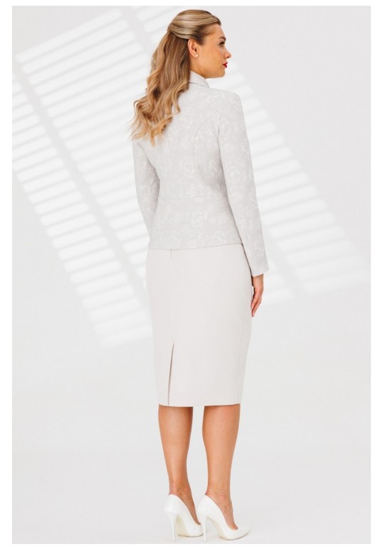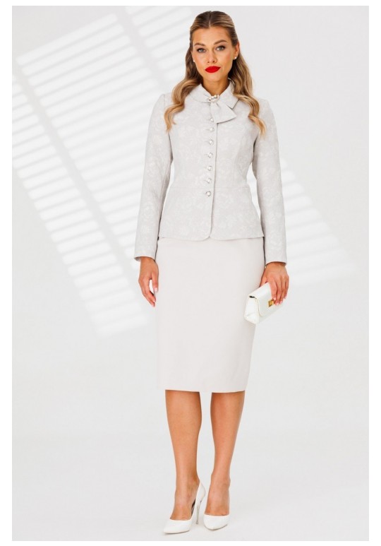 Элегантность с характером. Именно так можно описать одну из новинок от брэнда Мода-Юрс. Она идеально впишется в модный гардероб и подчеркнет вашу ествественную красоту. Жакет полуприлегающего силуэта с рельефами, отрезной по линии талии , спинка со средним швом. Рукав втачной двухшовный. Воротник декорирован протяжкой. Застежка центральная на петли пуговицы,сверху на крючок. Юбка прямая, зауженная к низу, сверху на притачном поясе. Застежка на тесьму молнию в среднем шве, который переходит в шлицу. Костюм на подкладке .